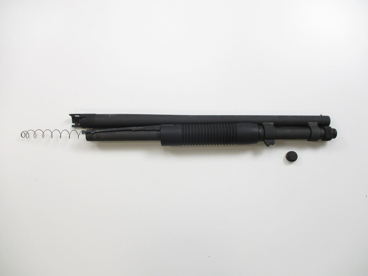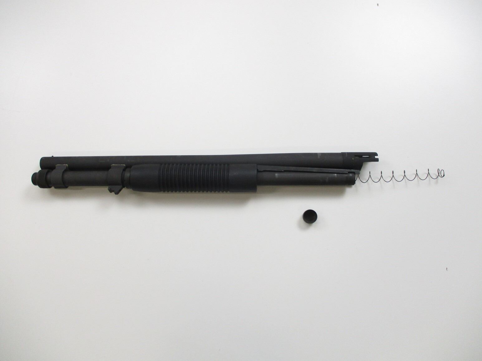 MOSSBERG MODEL 590 12 GAUGE SHOTGUN BARREL ASSEMBLY , 12GA 2-3/4" OR 3", APPROX. 20.75" BARREL, GOOD . SHINY BORE, CYLINDER CHOKE, WITH FRONT METAL BEAD, ALSO INCLUDES MAGAZINE TUBE WITH FOLLOWER & SPRING, & FOREND ASSEMBLY. MAY REQUIRE FITTING.