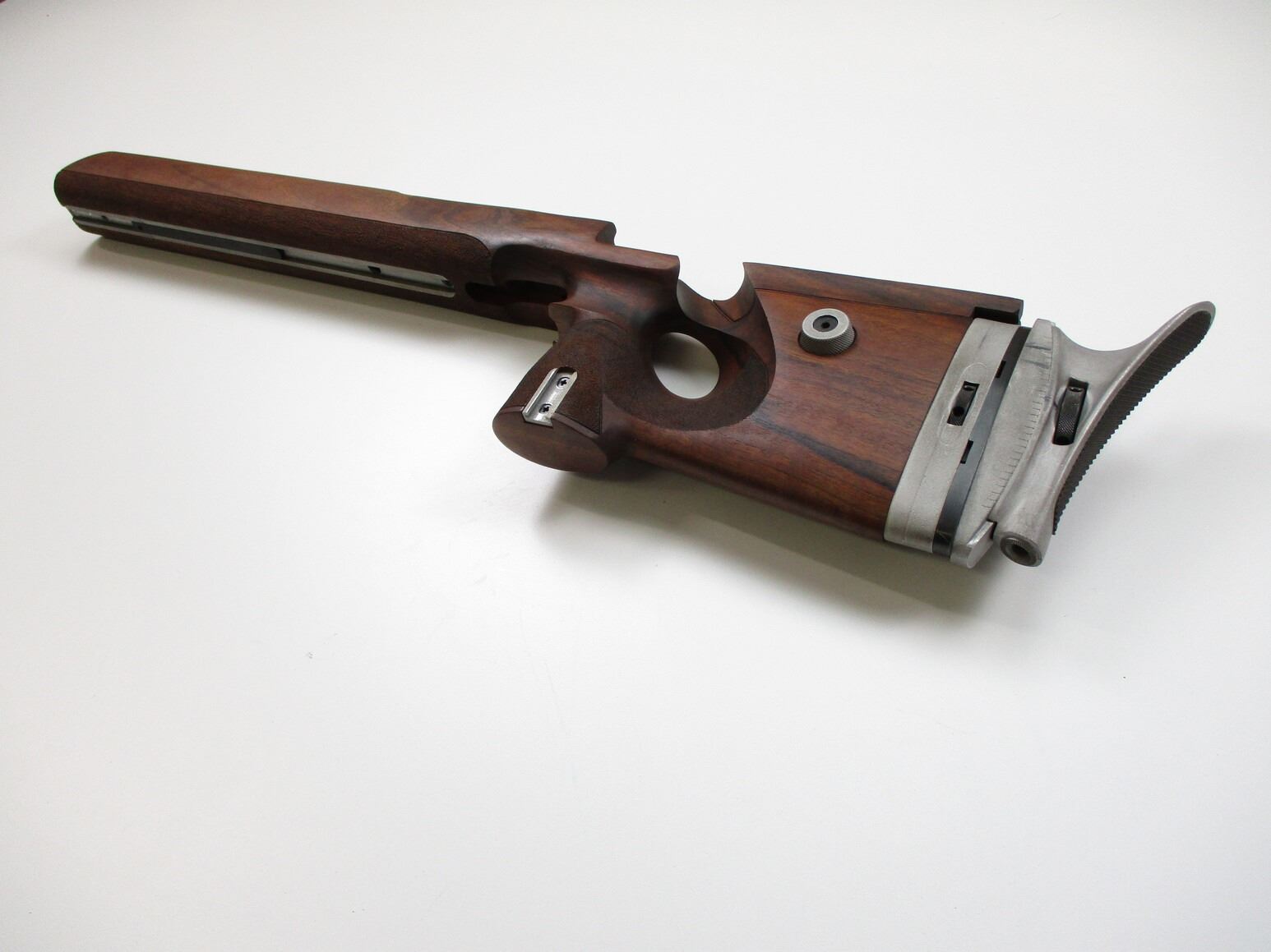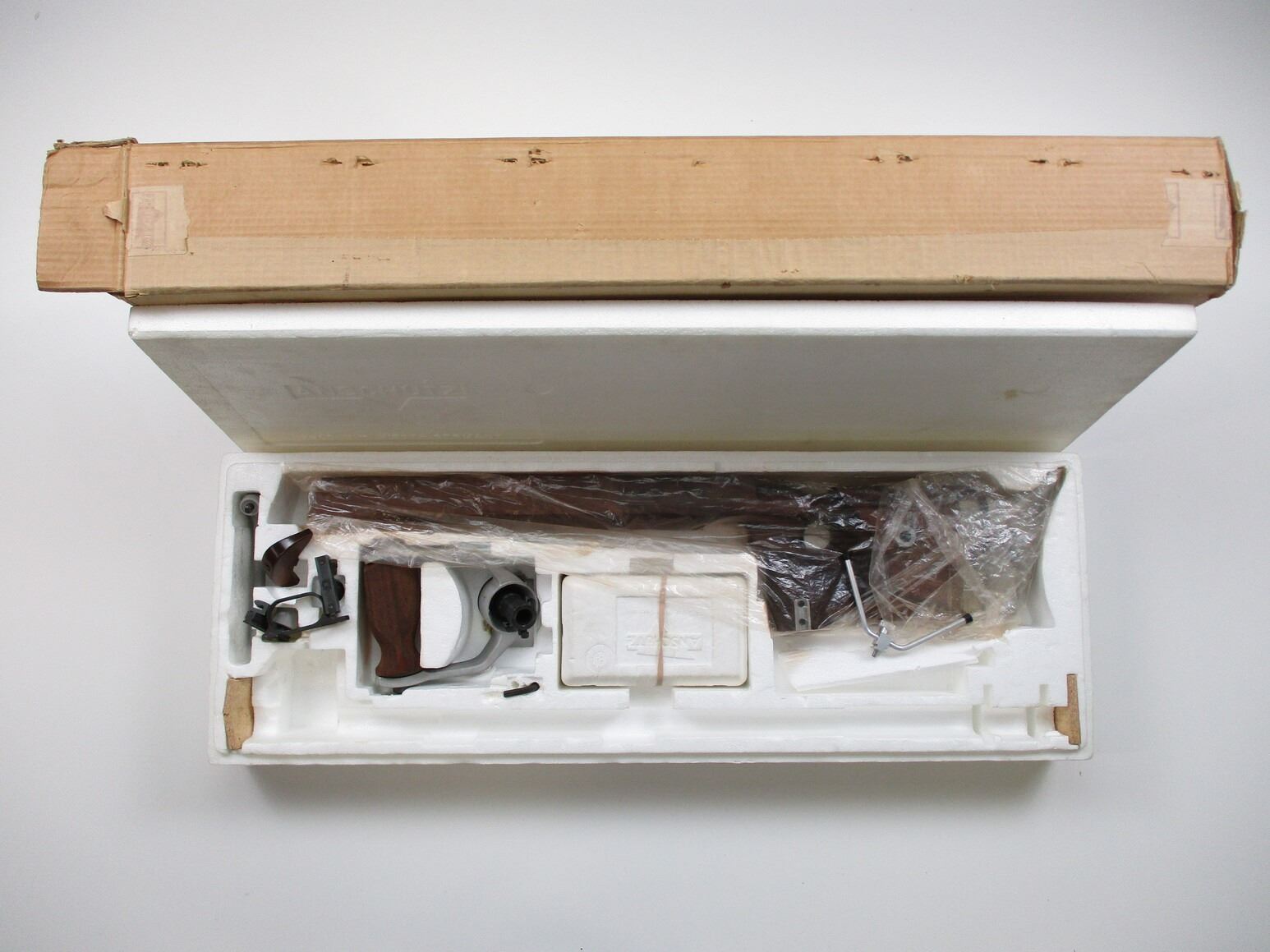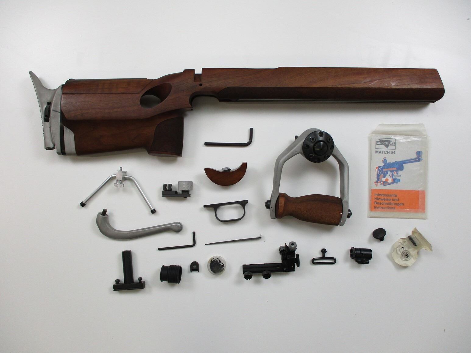 ANSCHUTZ 1413 D TARGET STOCK & ACCESSORIES , INCLUDES: LEFT HANDED RIFLE STOCK, WITH ADJUSTABLE BUTT PLATE, CHEEK REISER, FOREND CHANNEL, ALSO INCLUDES TARGET STYLE FOREGRIP, TABLE TOP BI-POD, ADJUSTABLE REAR PEEP SIGHT WITH ELEVATION & WINDAGE ADJUSTMENTS, FRONT GLOBE SIGHT WITH VARIOUS INSERTS, ETC. COMES IN ORIGINAL PACKAGING.