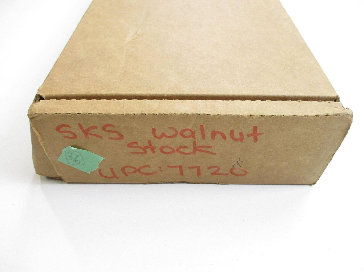 SKS WALNUT RIFLE STOCK , APPEARS NOS, APPROX. 30", INCLUDES RECOIL PAD, SWIVEL STUD POINTS, HAND GUARD, COMES IN PACKAGING WITH PADDING.