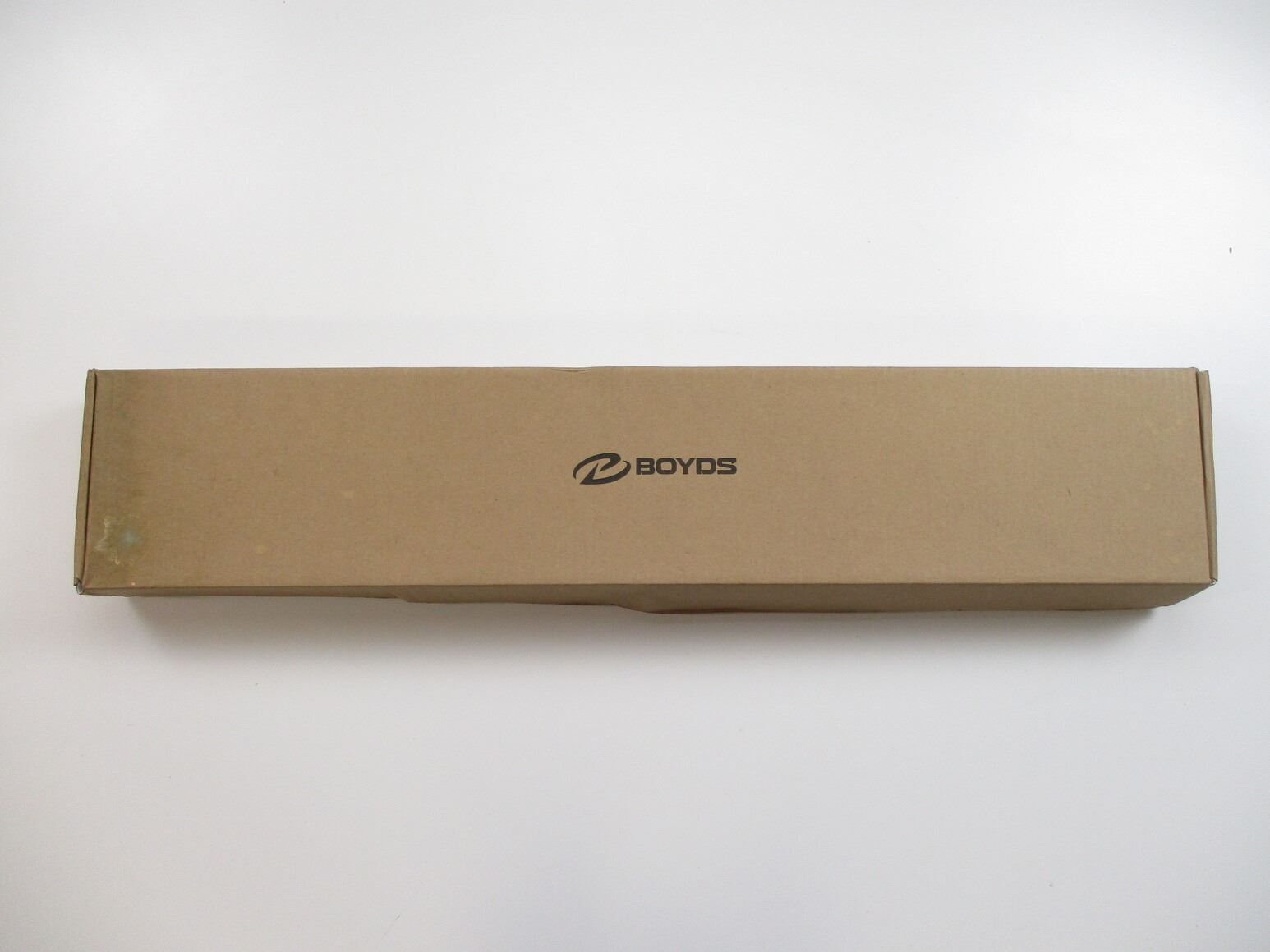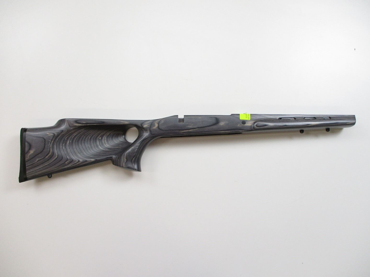 BOYD TIKKA T3 RIFLE STOCK , WOOD, BLACK PEPPER, RIGHT HANDED THUMB STOCK, WITH RECOIL PAD, SWIVEL STUD, APPROX. 31.25" APPEARS NOS, WITH FACTORY STICKER, IN ORIGINAL PACKAGE, WITH PADDING.