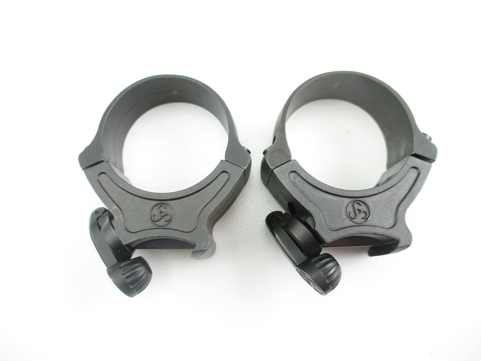SAUER MODEL 303 30MM SCOPE RINGS, COMPLETE PAIR, STEEL CONSTRUCTION, SAUER LOGO, WITH QD LEVERS, COMES IN PADDED PACKAGING.