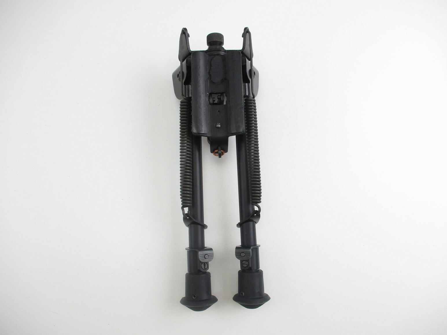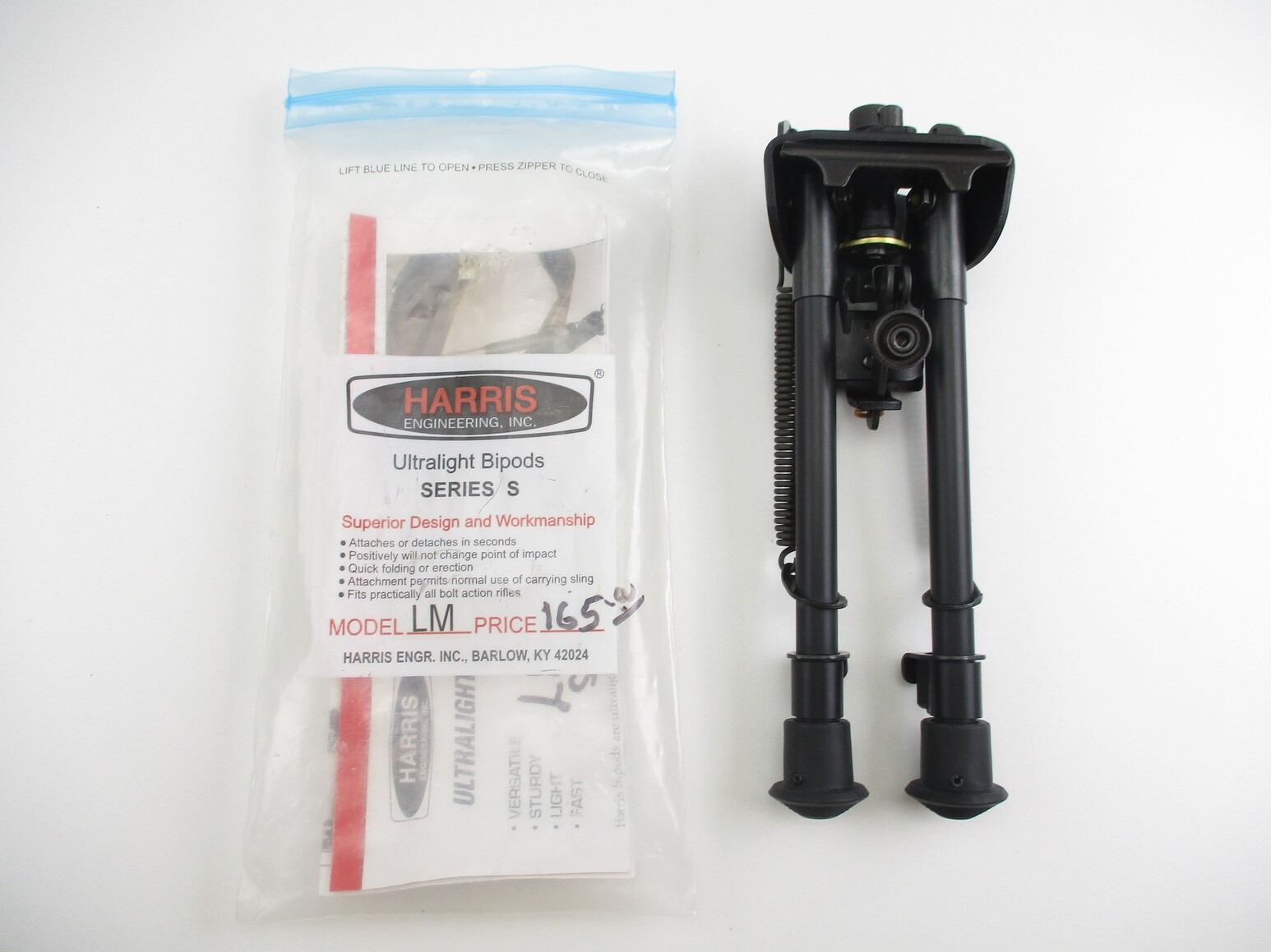 HARRIS SLM BI-POD , APPROX. 7.75" TO 12", SPRING LOADED LEGS, RUBBER FEET, WITH SWIVEL STUD ATTACHMENT & PADDING, COMES WITH MANUAL & ORIGINAL PACKAGE.