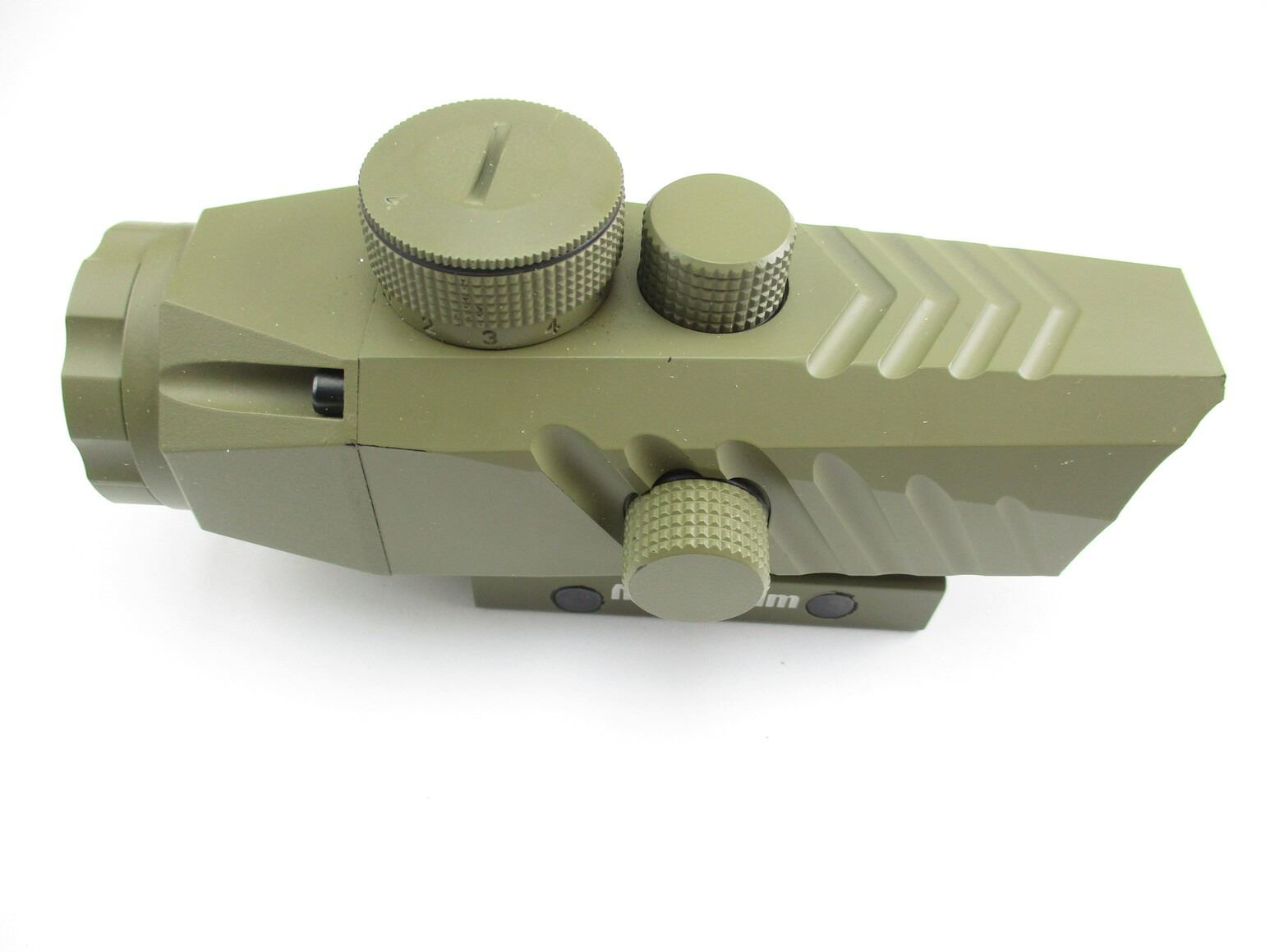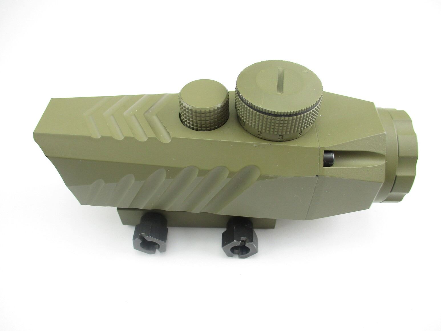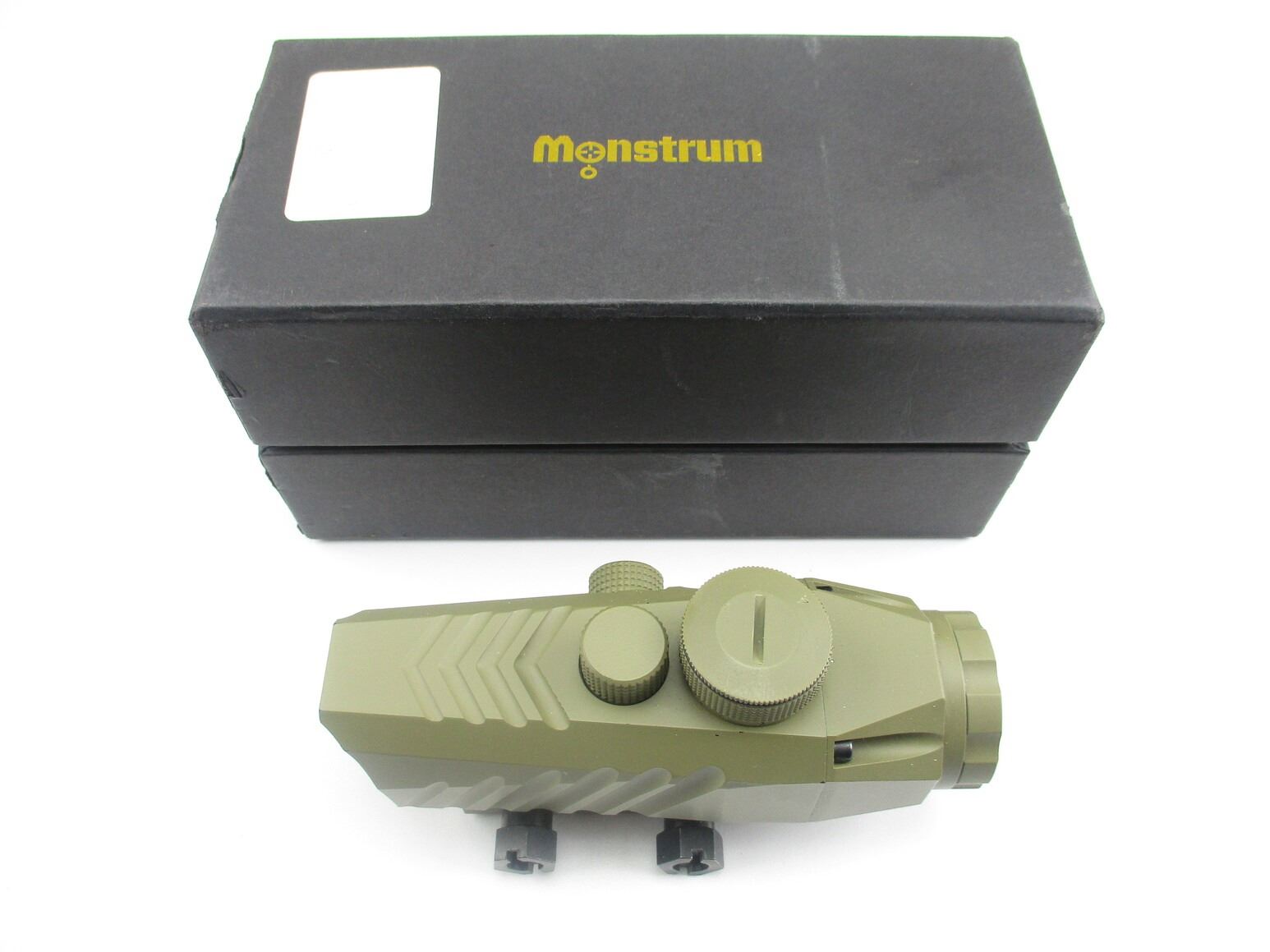MONSTRUM P330X TACTICAL 3X30 PRISM SCOPE , CLEAR OPTICS, CIRCLE DOT TYPE RETICLE, ILLUMINATES RED & GREEN, WORKS, TAN, FITS TO PICATINNY RAILS & WEAVER TYPE BASES, COMES IN ORIGINAL PACKAGE WITH CLEANING CLOTH & MANUAL.