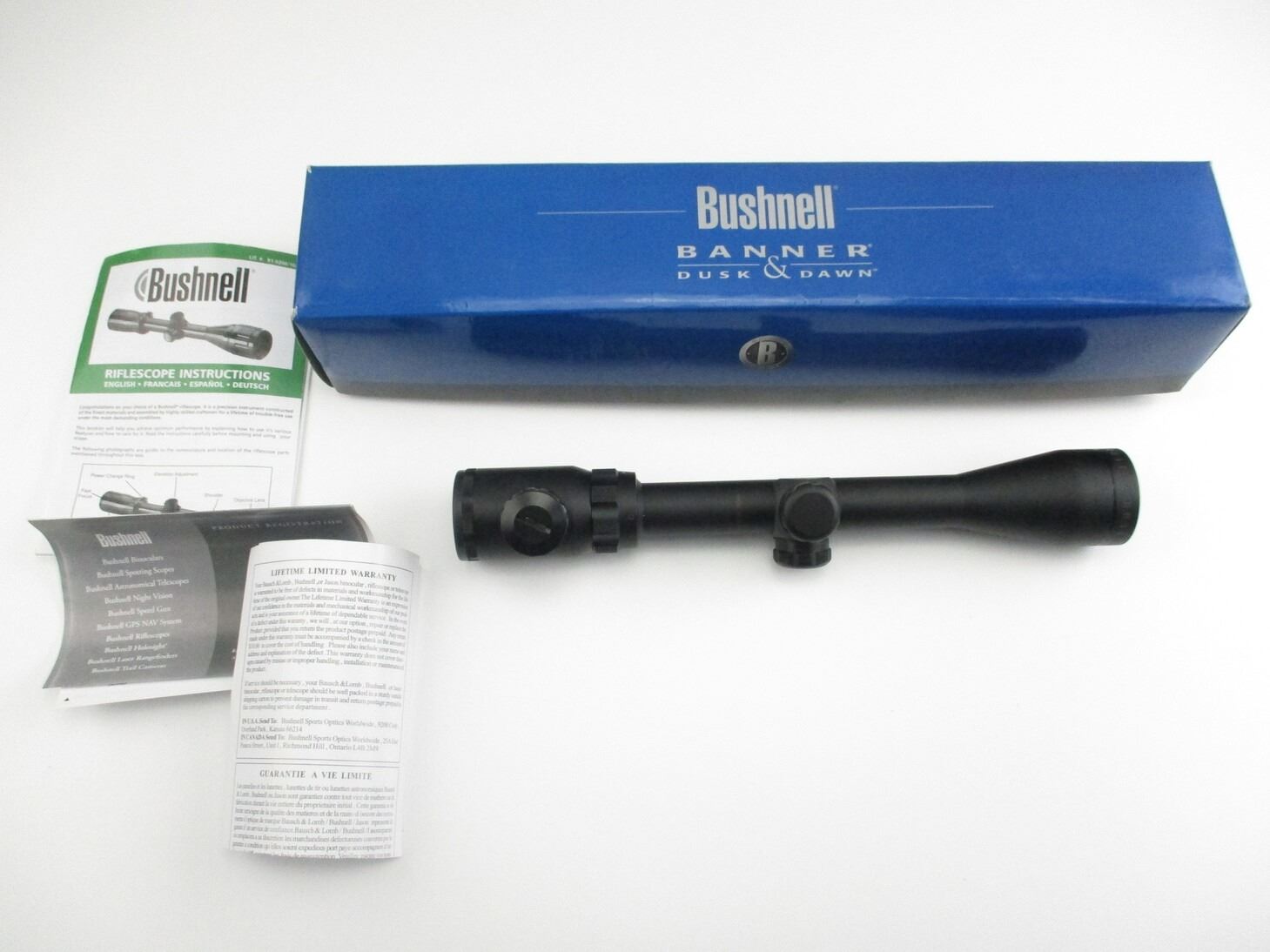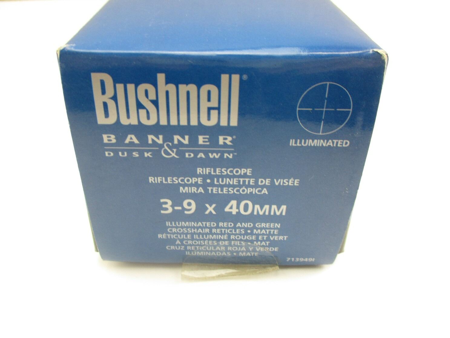 BUSHNELL 3-9X 40 WA RIFLE SCOPE , CLEAR OPTICS, IR CROSS TYPE RETICLE, ILLUMINATES RED & GREEN, WORKS, 1" TUBE DIAMETER, MATTE FINISH. COMES IN ORIGINAL PACKAGE, WITH MANUAL.