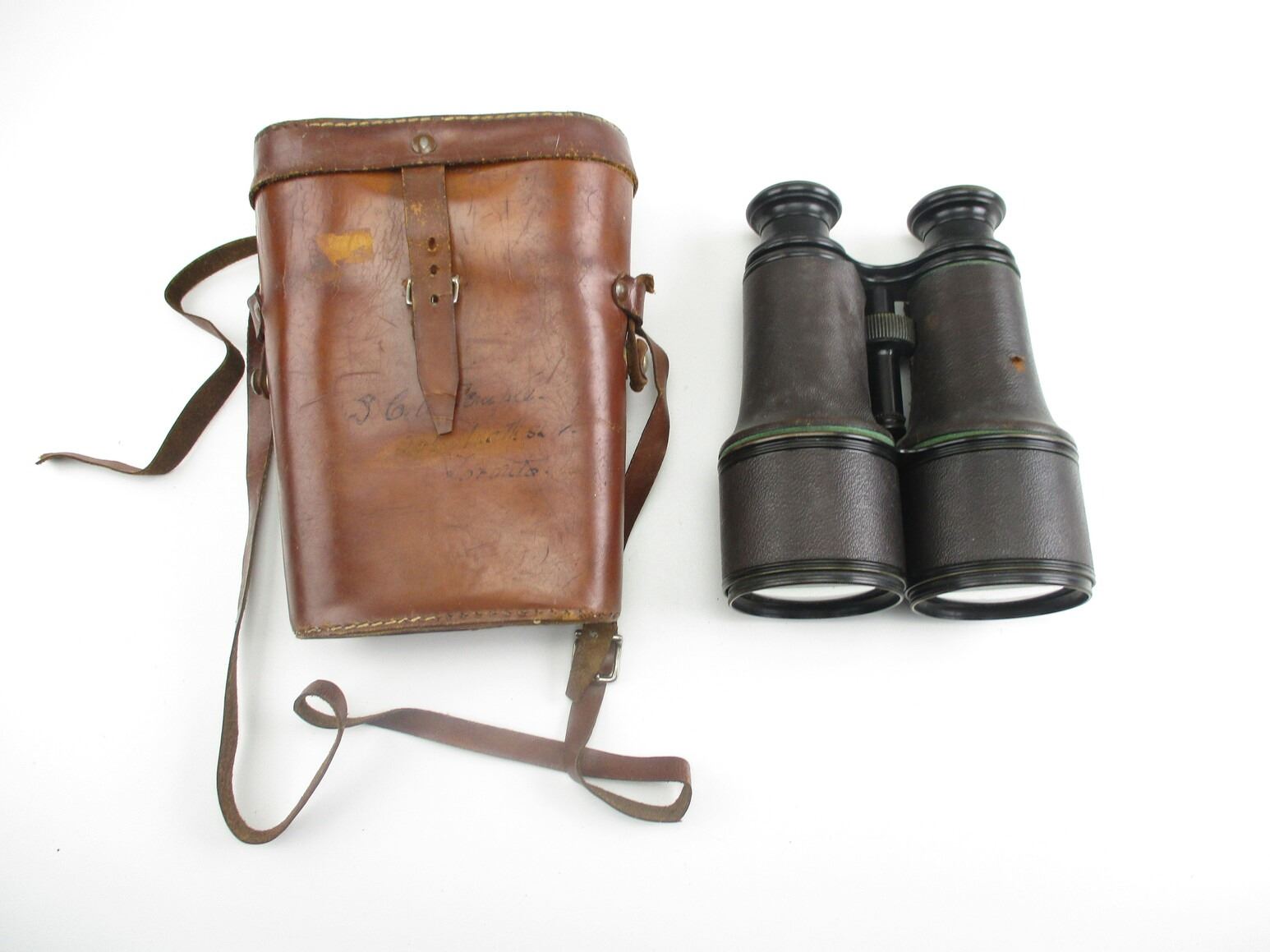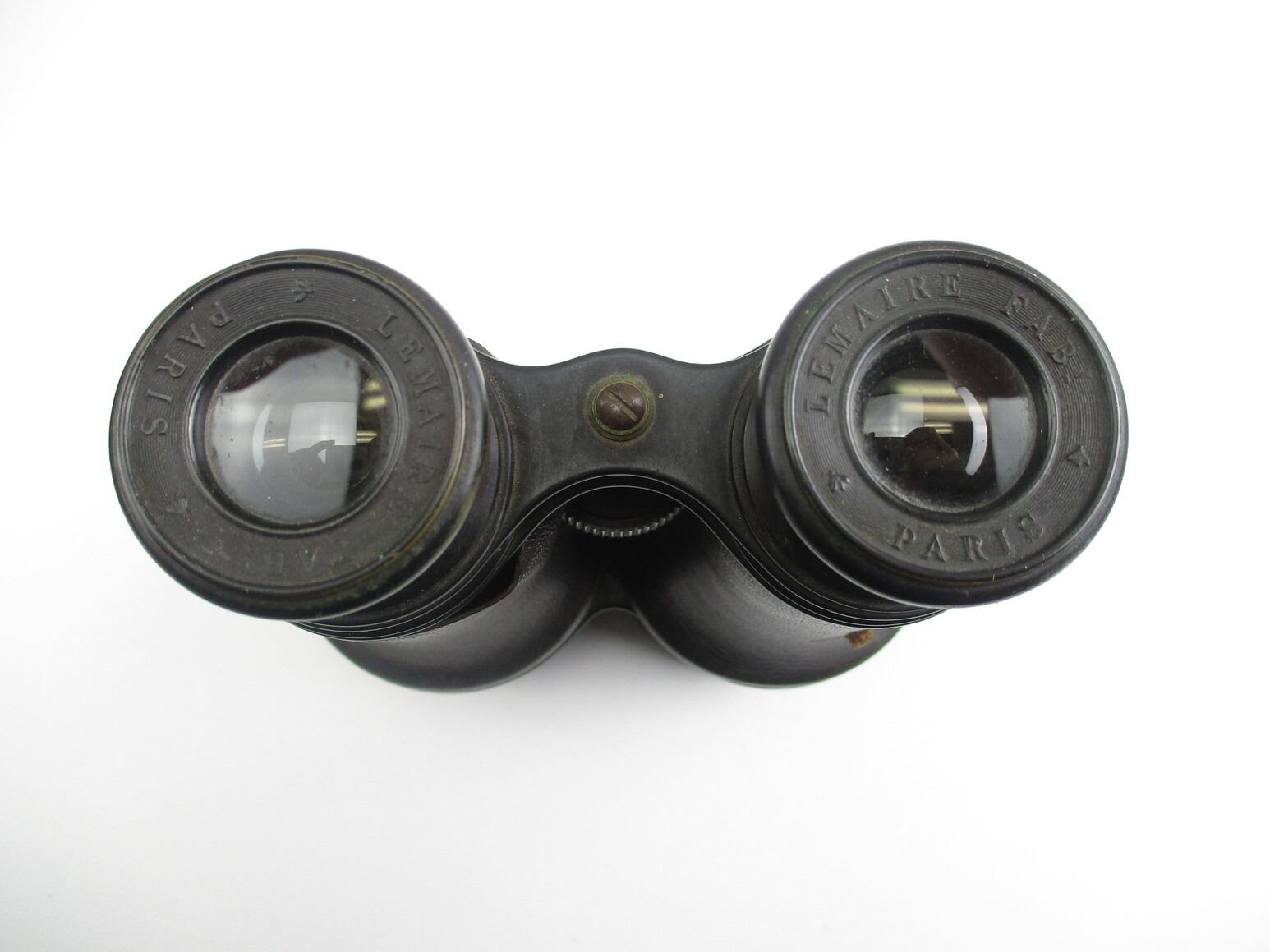 ANTIQUE FRENCH BINOCULARS , OPTICS NEED CLEANING, DIRT POSSIBLY INSIDE BINOCULARS, FOCUS DIAL WORKS, MFG'D BY LEMAIRE FABT PARIS, COMES WITH LEATHER CARRY CASE WITH SHOULDER STRAP (STRAP BROKEN).