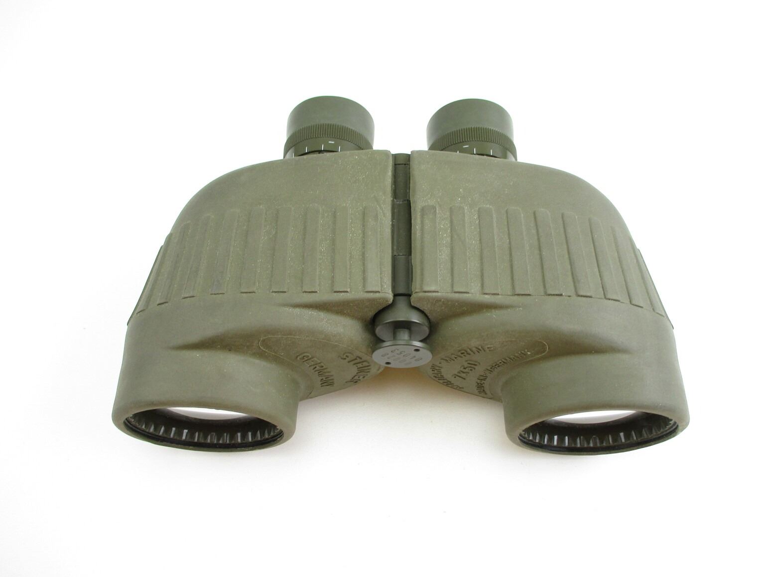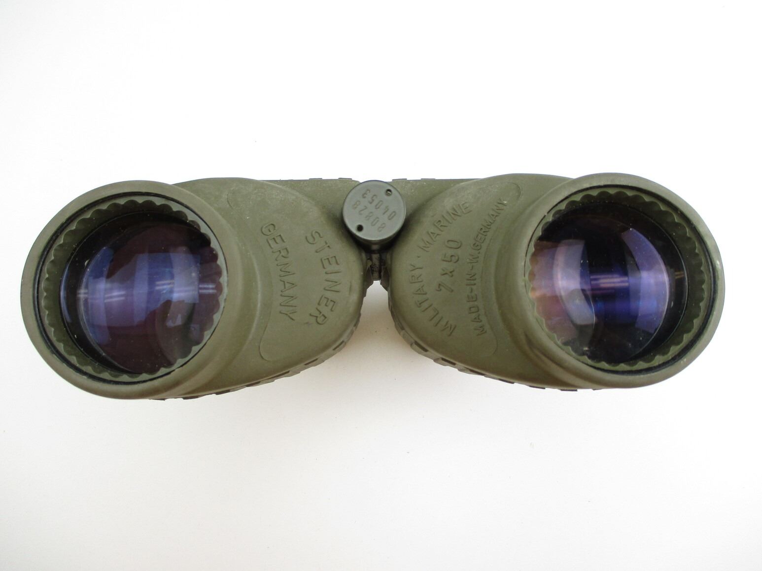 STEINER 7X 50 BINOCULARS , CLEAR OPTICS, MILITARY STYLE, MADE IN WEST GERMANY, GREEN RUBBER TEXTURE, # 80828 04053.