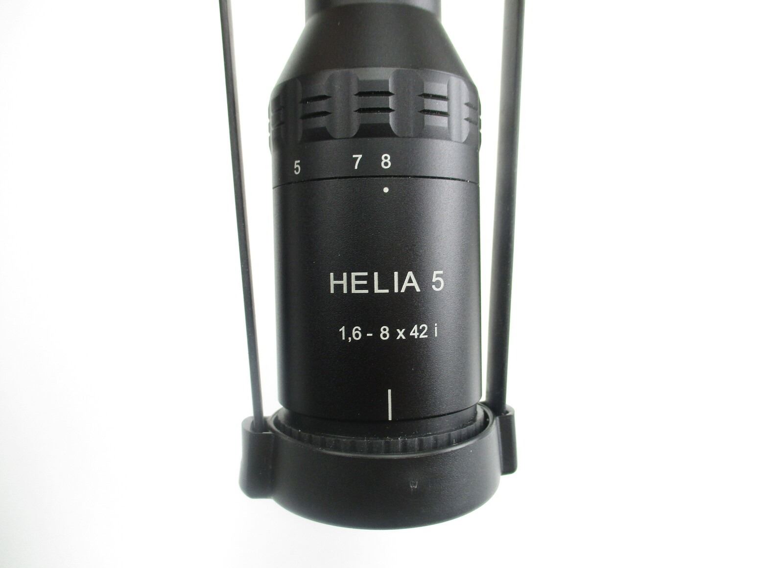 KAHLES HELIA 5 1.6-8X 42 RIFLE SCOPE , CLEAR OPTICS, ABS 4-DOT, ILLUMINATES, RED, WORKS, TUBE DIAMETER: 30MM, SERIAL # 1019269, MADE IN AUSTRIA, INCLUDES BIKINI STYLE LENS CAPS, MANUAL, & ORIGINAL PACKAGE.