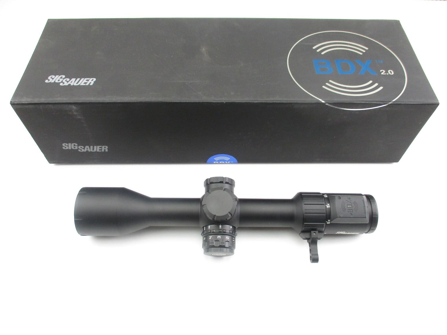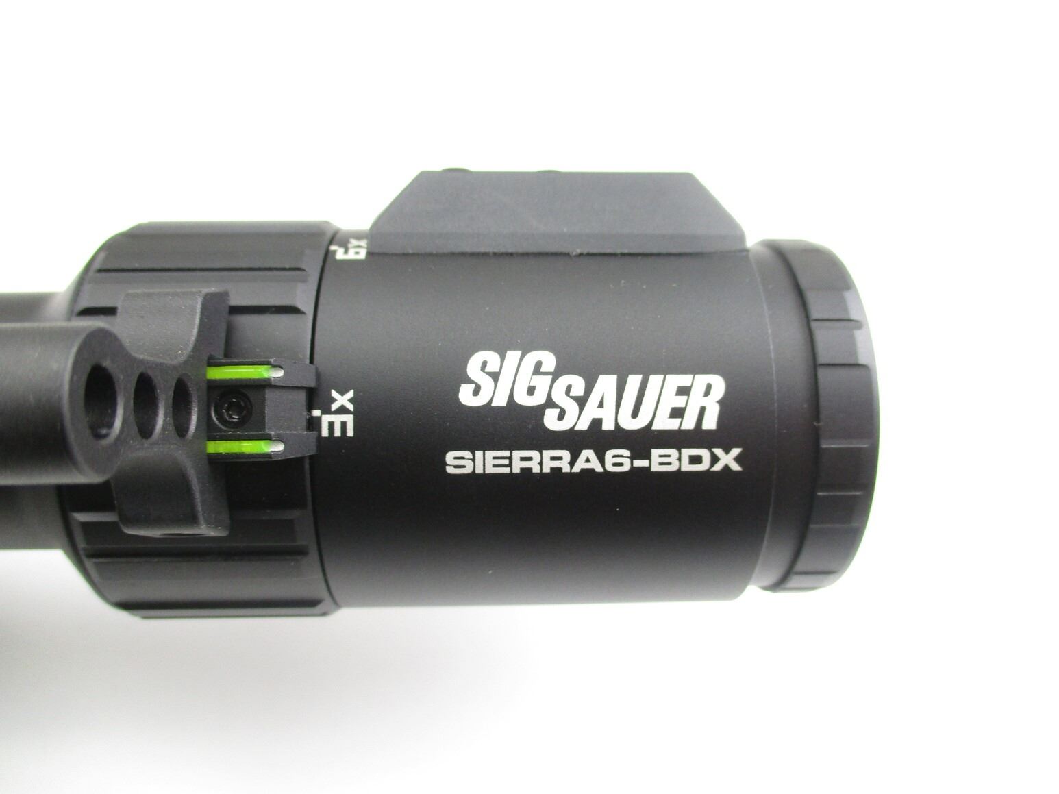 SIG SAUGER SIERRA 6BDX 3-18X 44MM RIFLE SCOPE , CLEAR OPTICS, BDX-R2 (0.25) MOA RETICLE, ILLUMINATES ORANGE, WORKS, 30MM TUBE DIAMETER, MATTE FINISH, SERIAL # 99Z001066PFH, BDX 2.0 SMART, INCLUDES SUN SHROUD, PARALLAX 50 YARDS TO ∞, COMES IN ORIGINAL PACKAGE WITH MANUAL & CLEANING CLOTH.