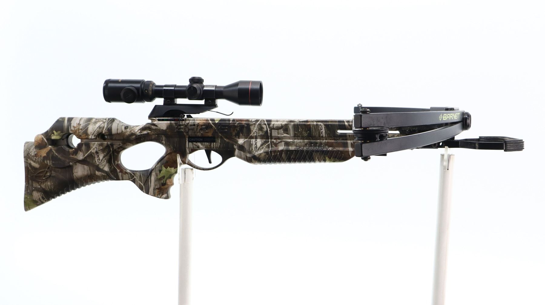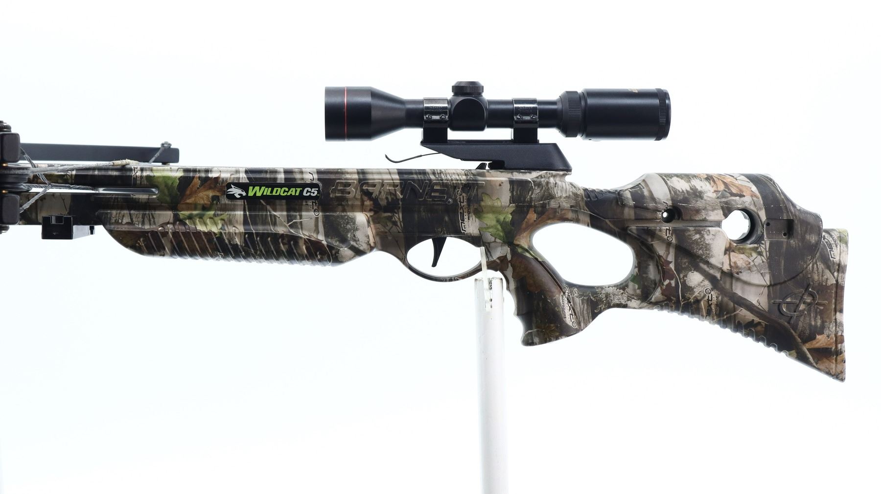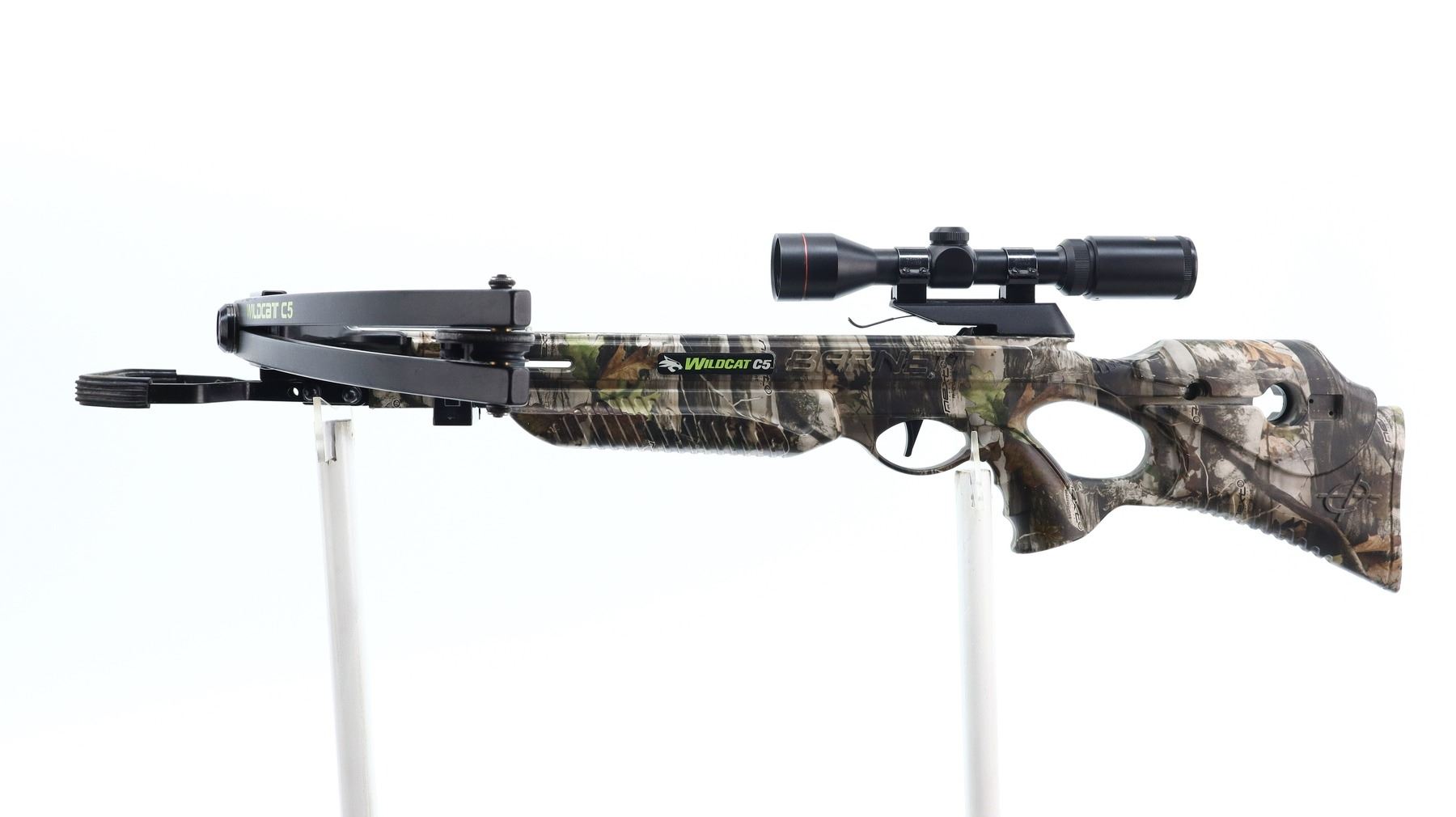 BARNETT WILDCAT C5 CROSSBOW , APPROX. 150 LB DRAW WEIGHT, APPROX. 12" STROKE, APPROX. 28" ARM LENGTH, INCLUDES EXCALIBUR CROSSBOW SCOPE, 2.5X-3.5X, OPTICS NOT CLEAR, CROSSBOW RETICLE, WITH 1" WEAVER CROSSBOW TYPE SCOPE RINGS.