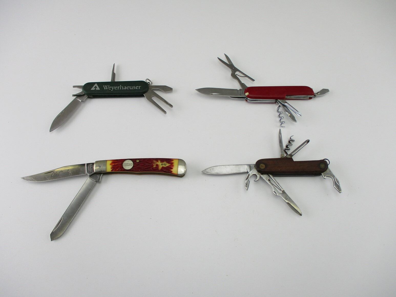UTILITY TOOLS & POCKET KNIFE , (3) UTILITY TOOLS, INCLUDES: BLADES, SCREW DRIVER, CORK SCREWS, ETC. (1) CAMILLUS FOLDING KNIFE, WITH 2 BLADES, STEEL, WITH BONE LIKE GRIPS.