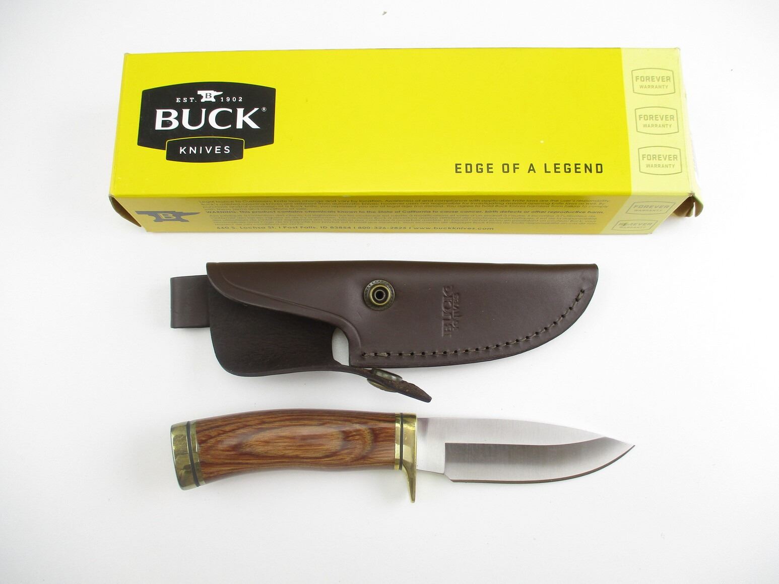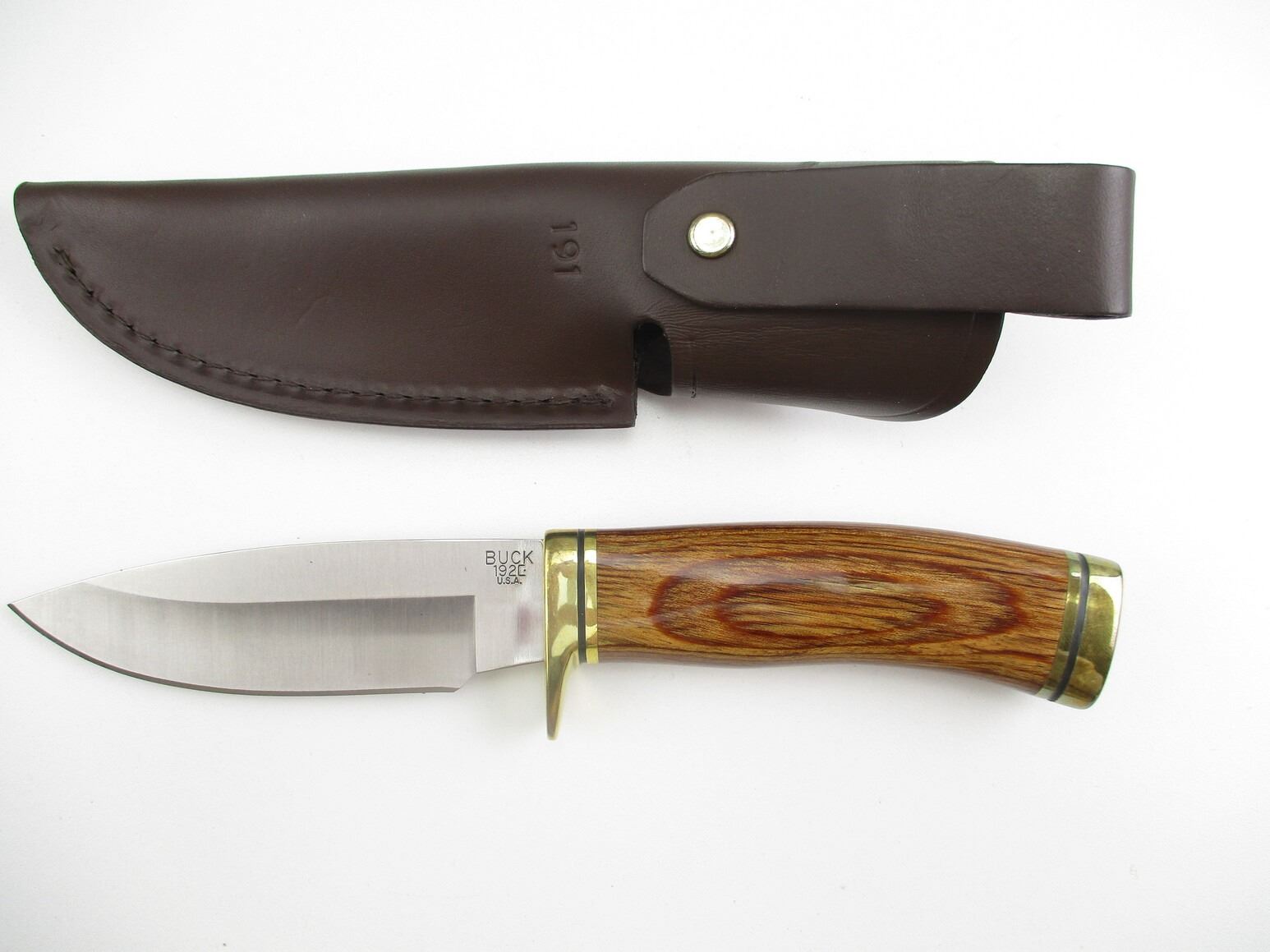 BUCK 192U KNIFE , STEEL, APPROX. 4.1" BLADE, WITH WOODEN HANDLE & LEATHER SHEATH, COMES IN ORIGINAL PACKAGE.