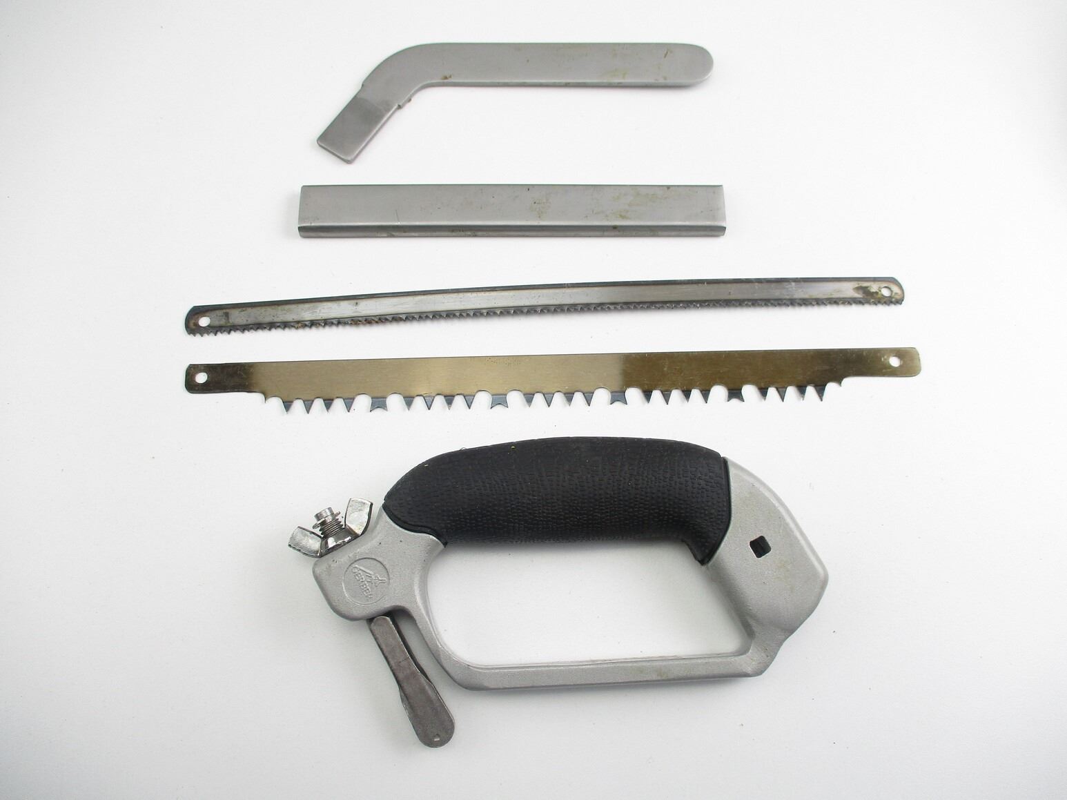 GERBER HAND SAW , APPEARS COMPLETE, WITH 2 SAW BLADES, APPROX. 10", APPEARS USED, SEE PHOTO.