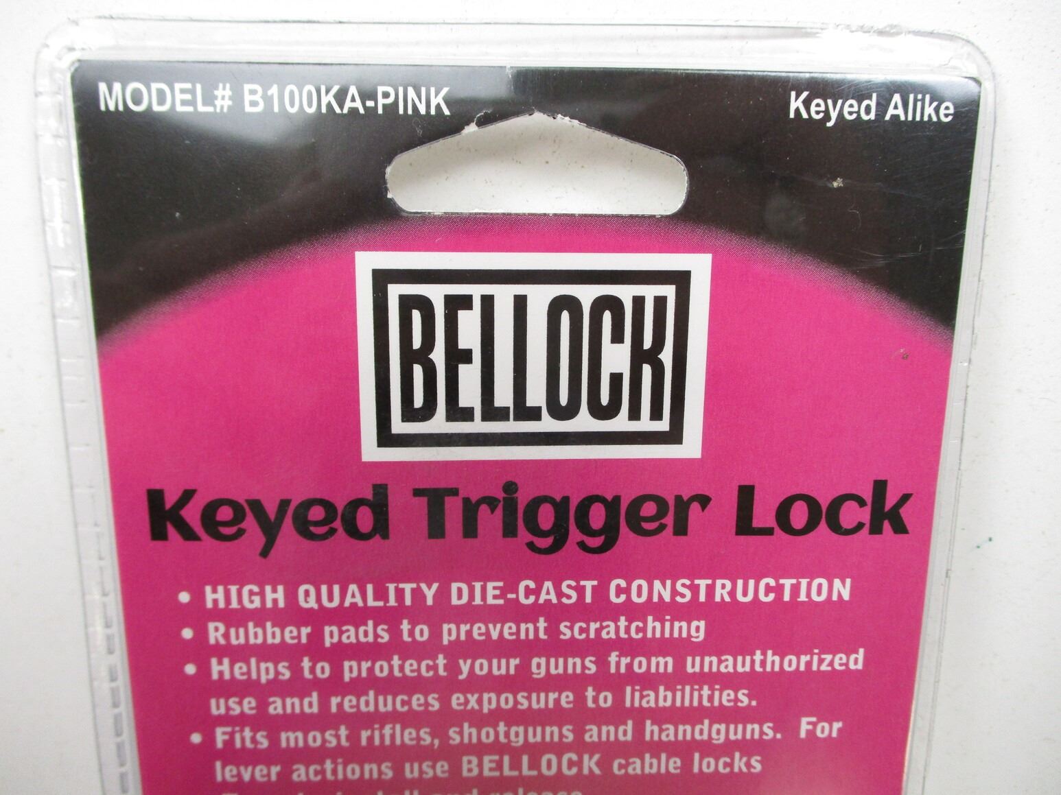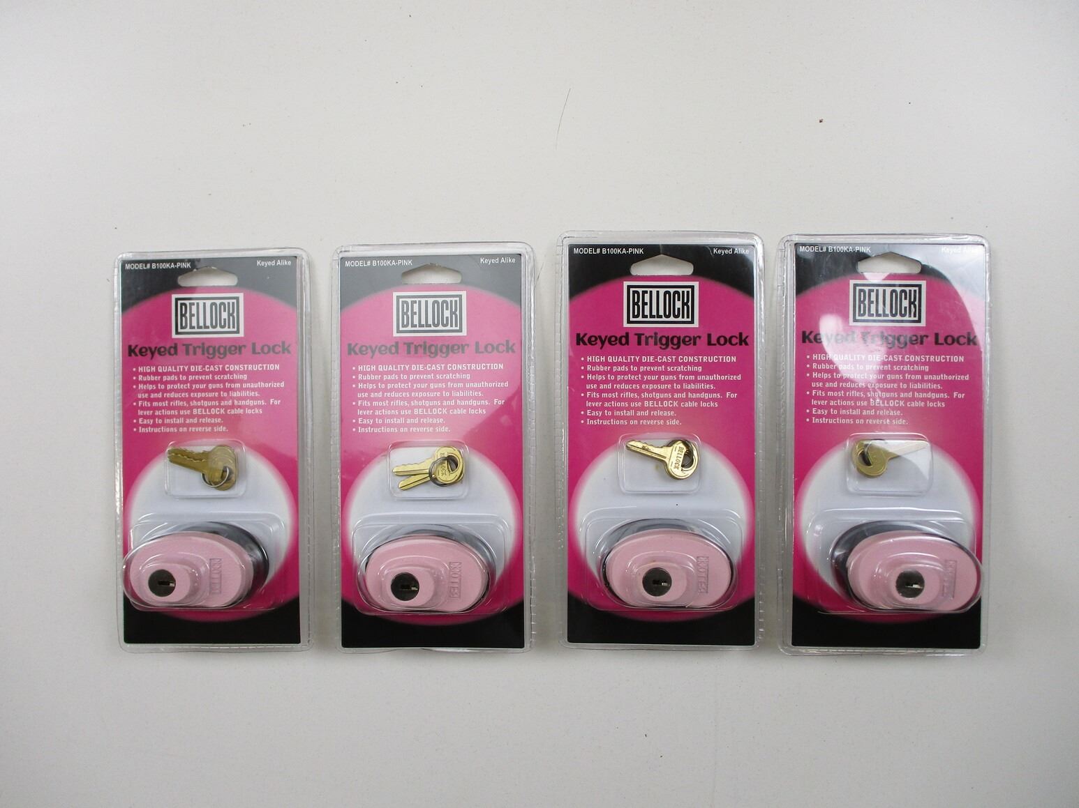BELL PINK TRIGGER LOCKS , LOT OF 4. NOS. WITH 2 KEYS EACH & KEYED ALIKE, IN ORIGINAL PACKAGING.