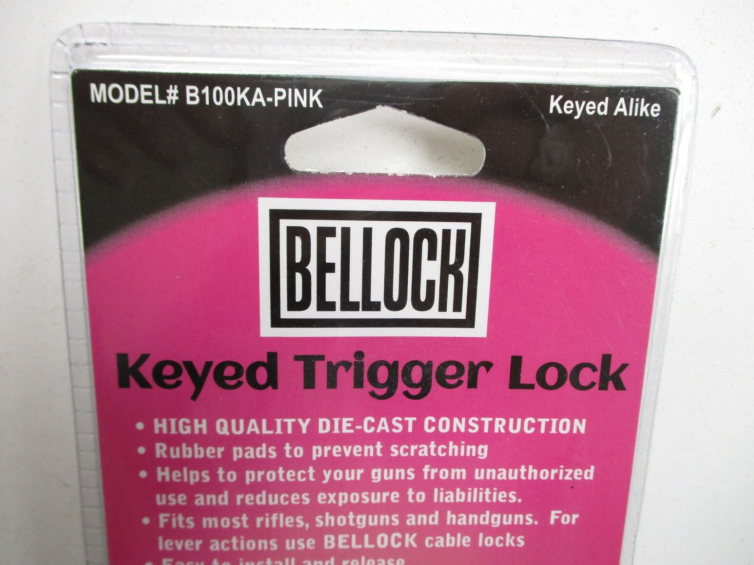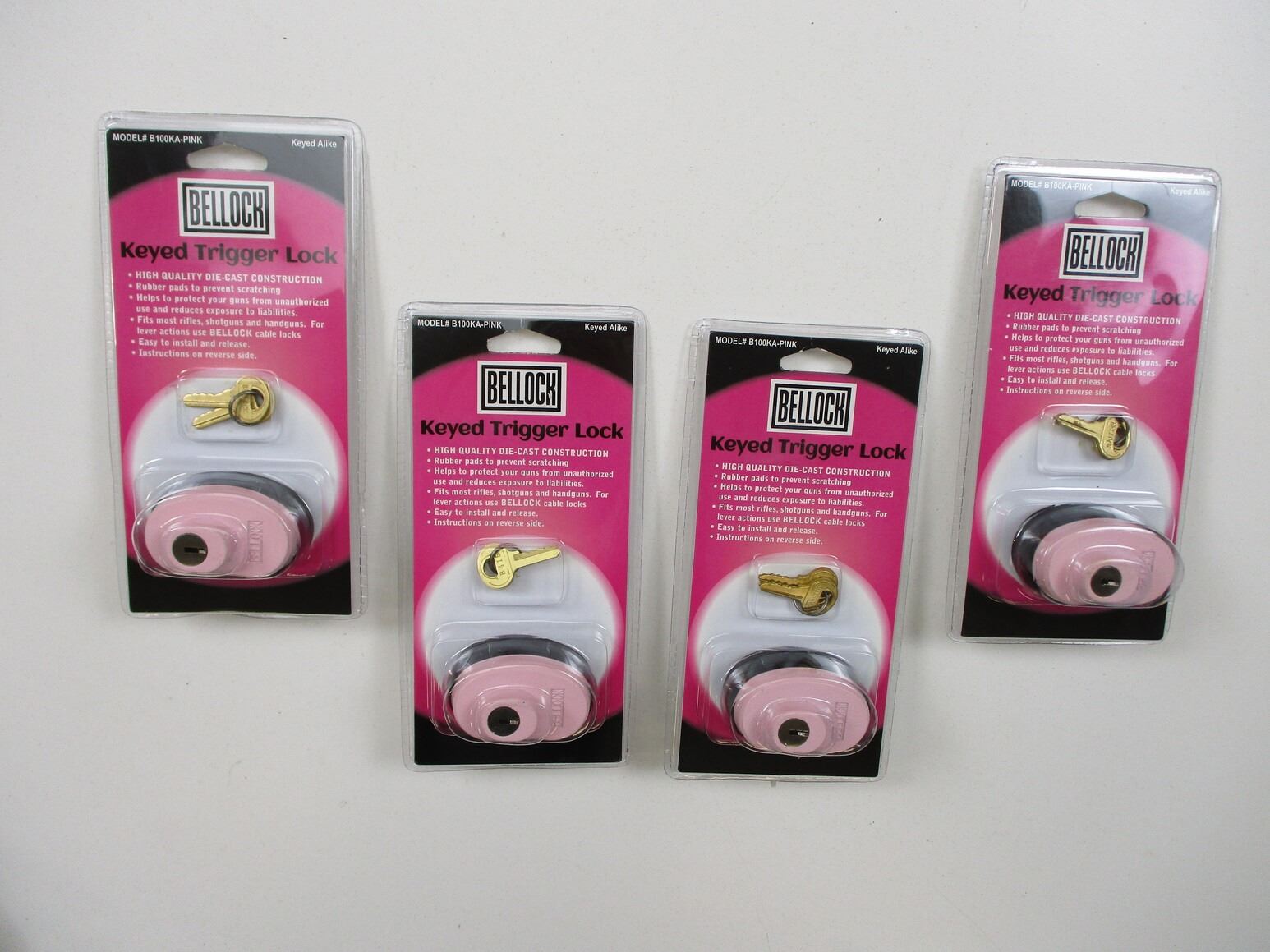 BELL PINK TRIGGER LOCKS , LOT OF 4. NOS. WITH 2 KEYS EACH & KEYED ALIKE, IN ORIGINAL PACKAGING.