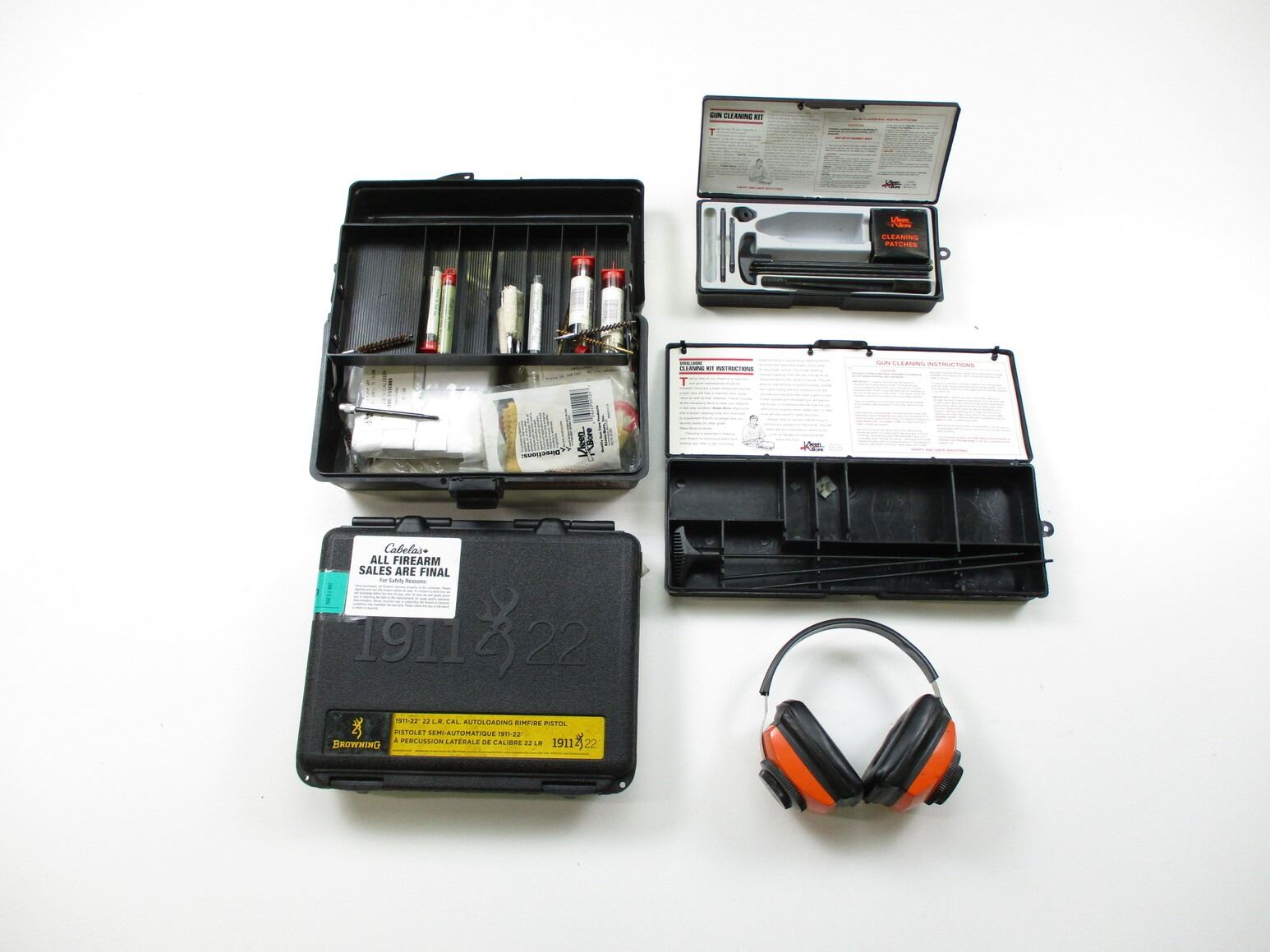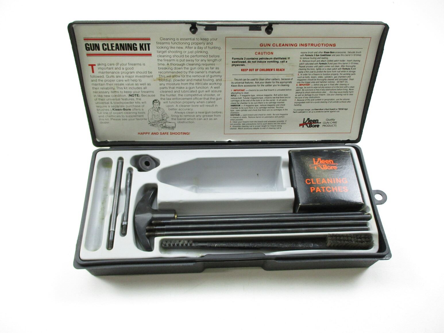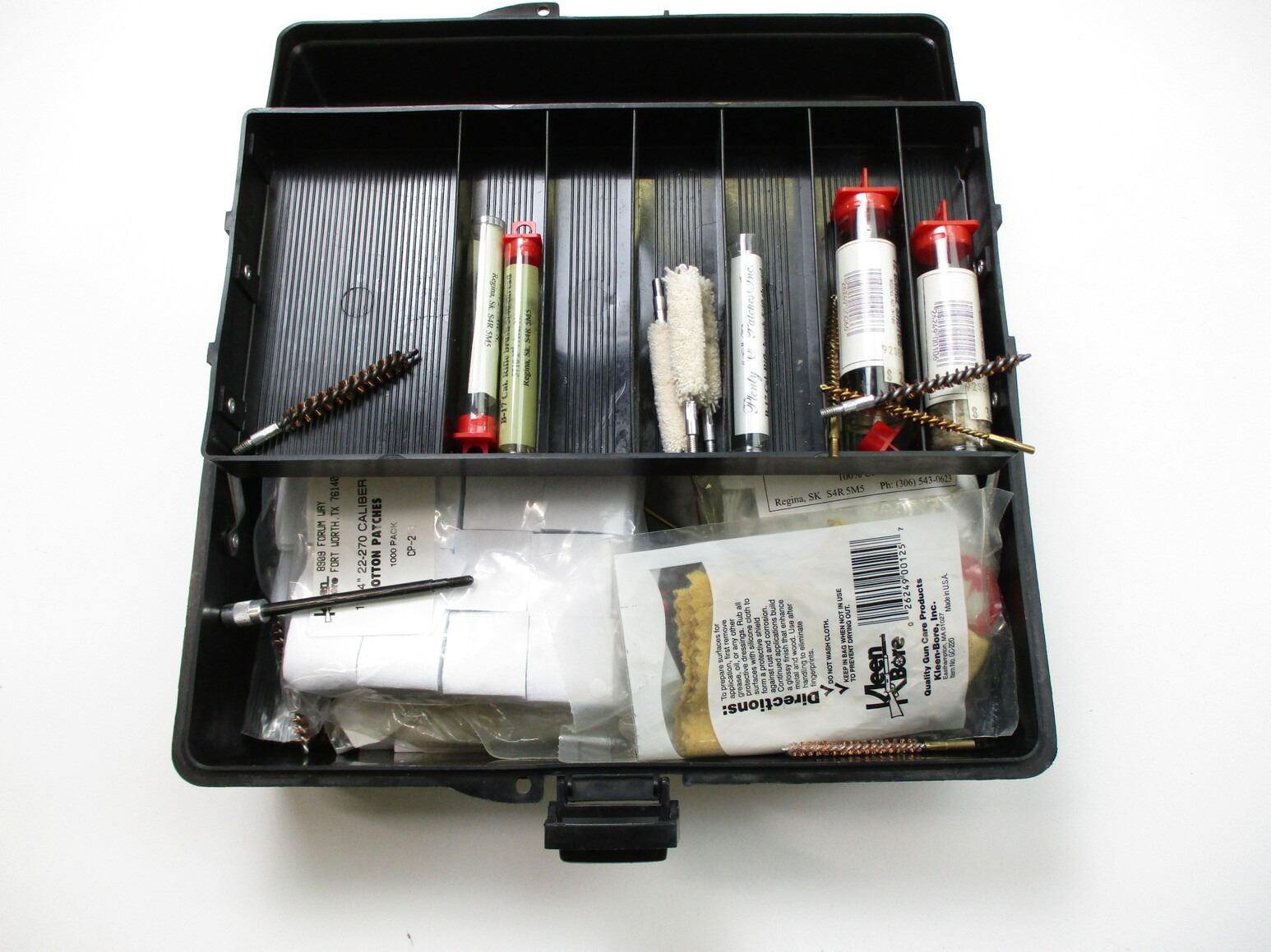 ASSORTED CLEANING ACCESSORIES , INCLUDES: KLEEN BORE CLEANING KITS, (INCOMPLETE), FOR PISTOL & RIFLE, (1) BLACK HAWK BIN, WITH VARIOUS CLEANING BRUSHES, MOPS, CLEANING PATCHES, ETC. FOR .22LR, 12G, ETC.
