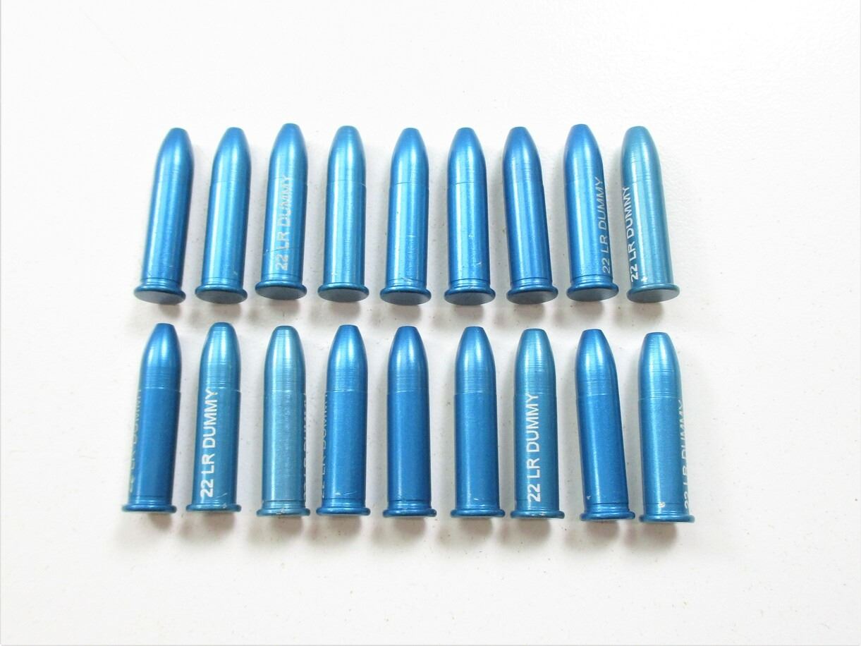 ALUMINUM .22LR DUMMY / SNAP CAP ROUNDS , LOT OF 18. BLUE, ALUMINUM CONSTRUCTION.