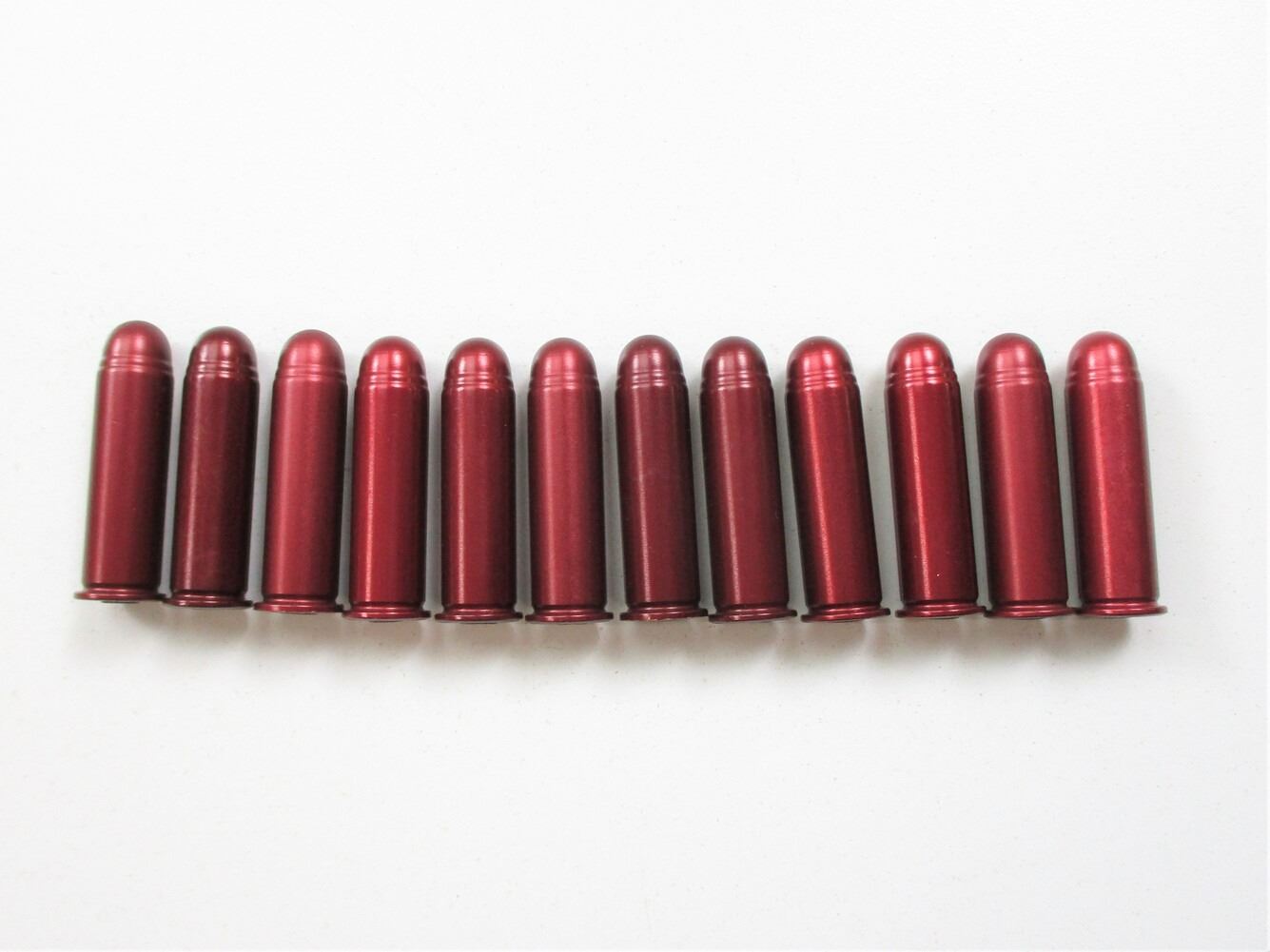A-ZOOM .38 SPL SNAP CAPS , LOT OF 13, RED, ALUMINUM CONSTRUCTION.