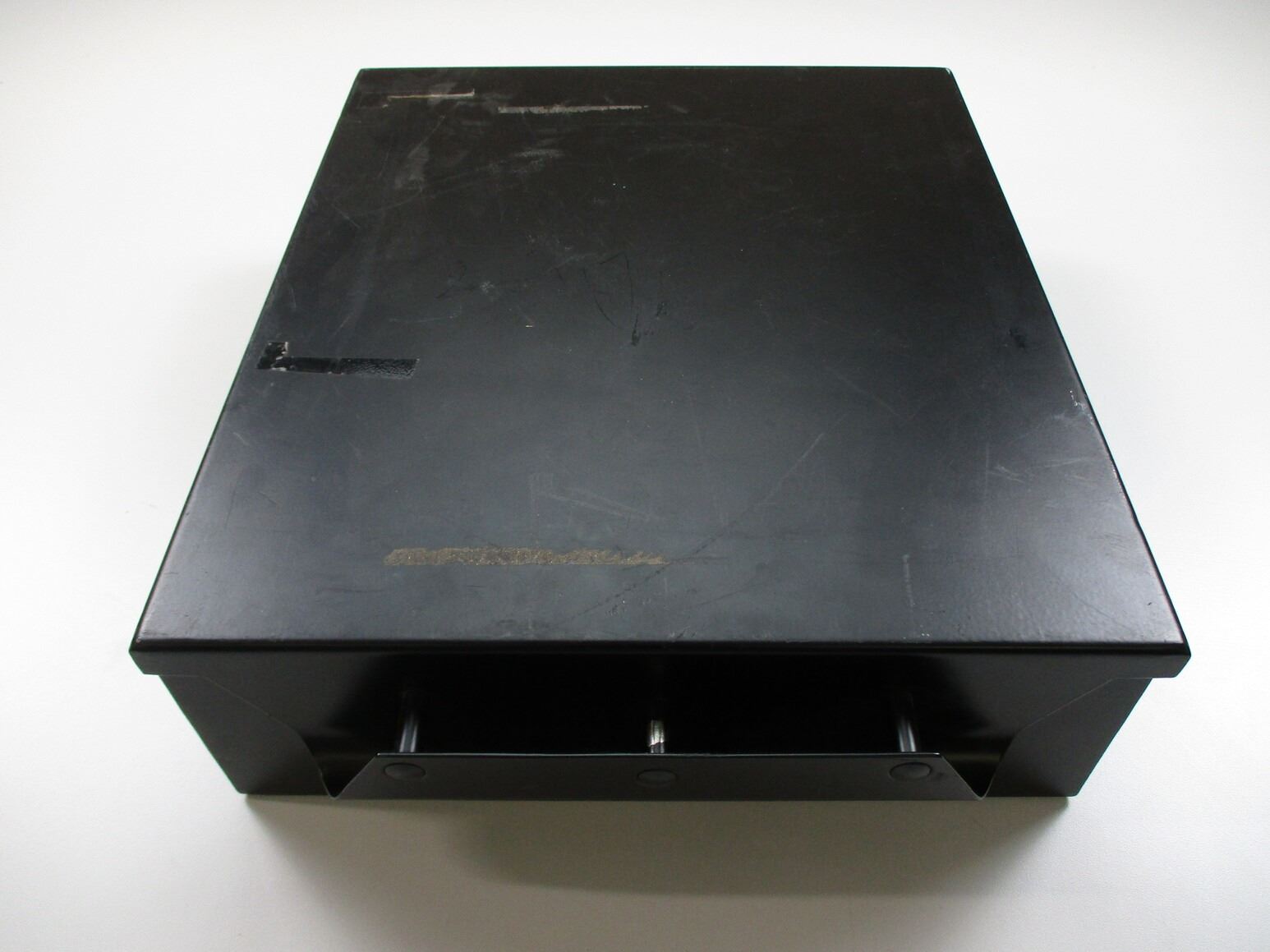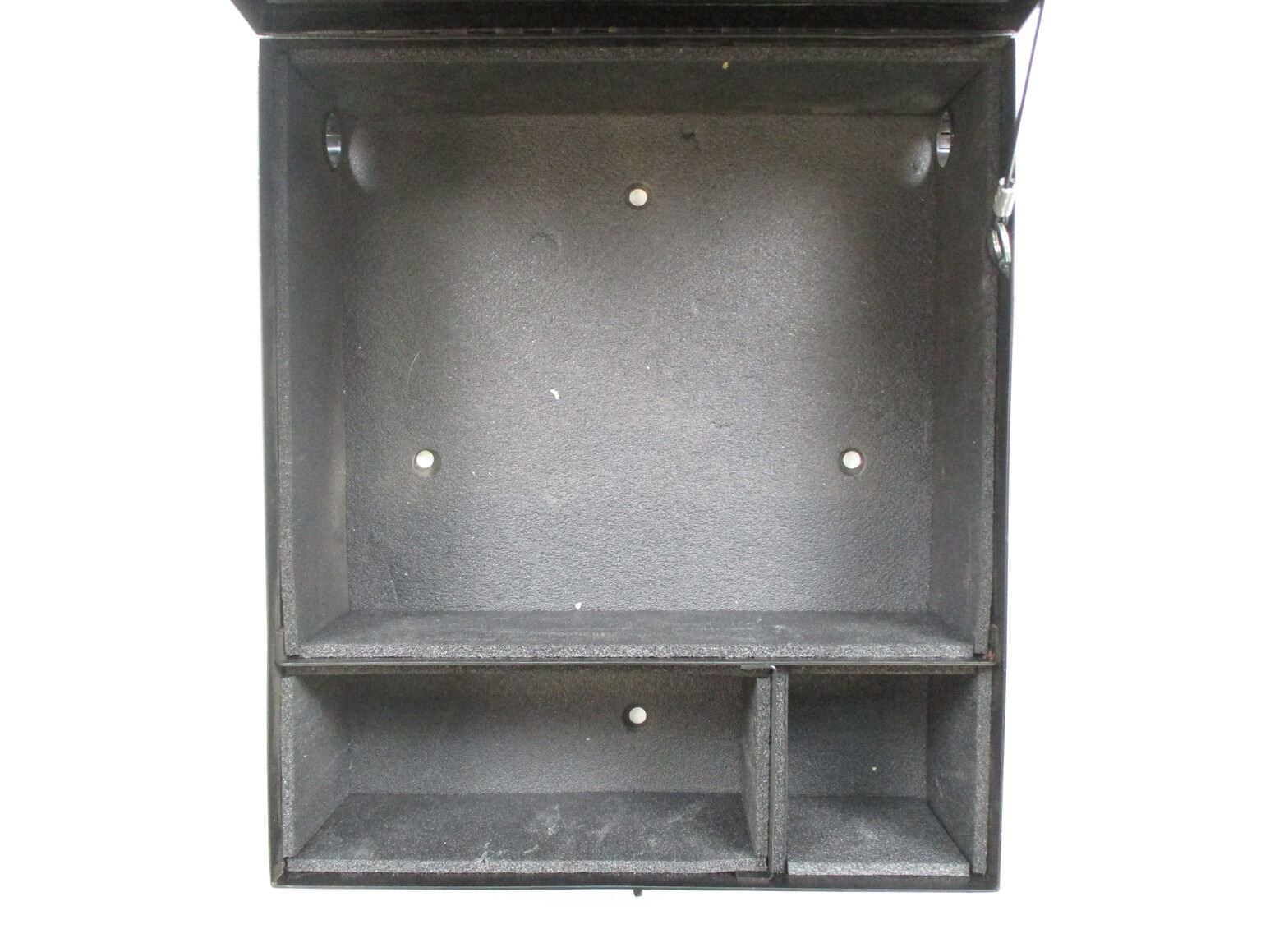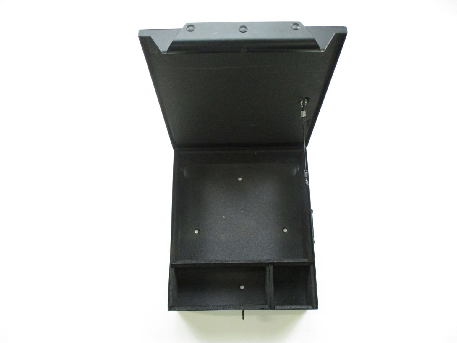 UNKNOWN HANDGUN SAFE , UNMARKED, BLACKENED STEEL, PADDED, NO MOUNTING HARDWARE, CARRY HANDLE ON SIDE, LOCKABLE WITH PAD LOCK OR CABLE LOCK, APPROX. 13.5 X 17 X 4.3".