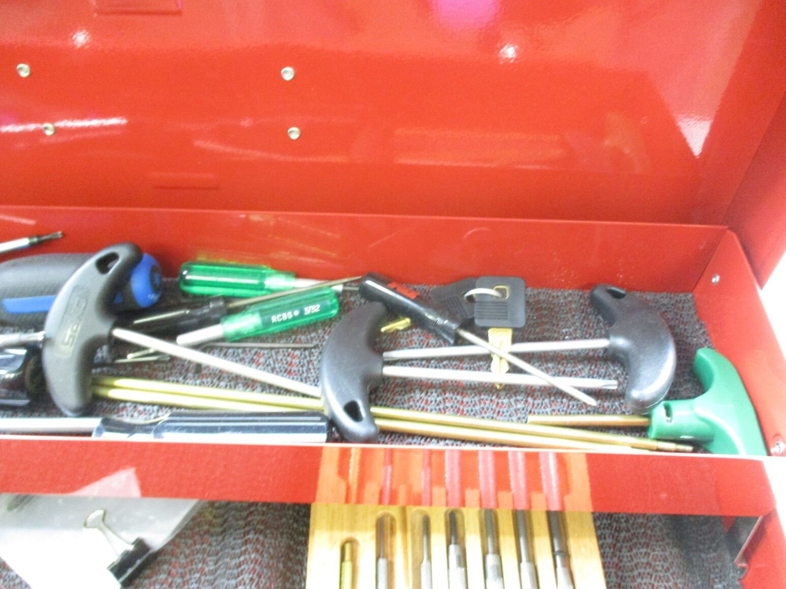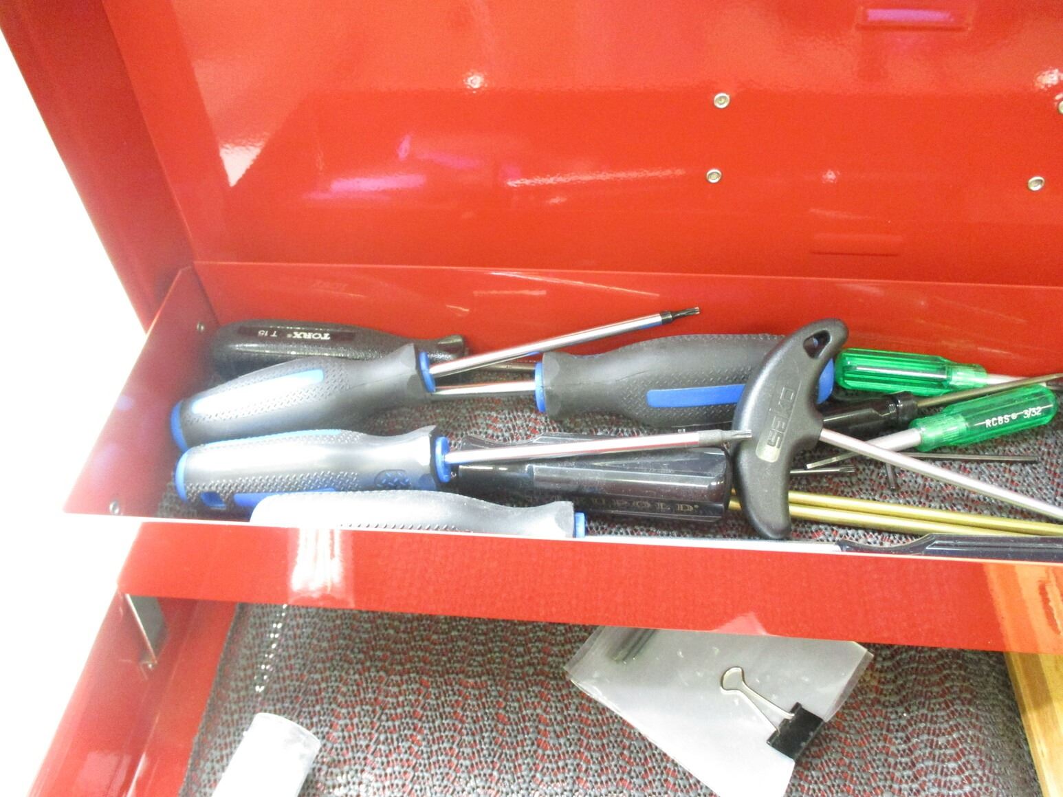 MASTERCRAFT TOOL BOX ETC, TOOL BOX INCLUDES 3 ROLL OUT SHELVES & TOP SHELF WITH LID, LOCKABLE, INCLUDES KEYS, LOCK WORKS, ALSO INCLUDES VARIOUS TORX SCREW DRIVERS FROM VARIOUS MFG'S, ETC. SEE PHOTO.