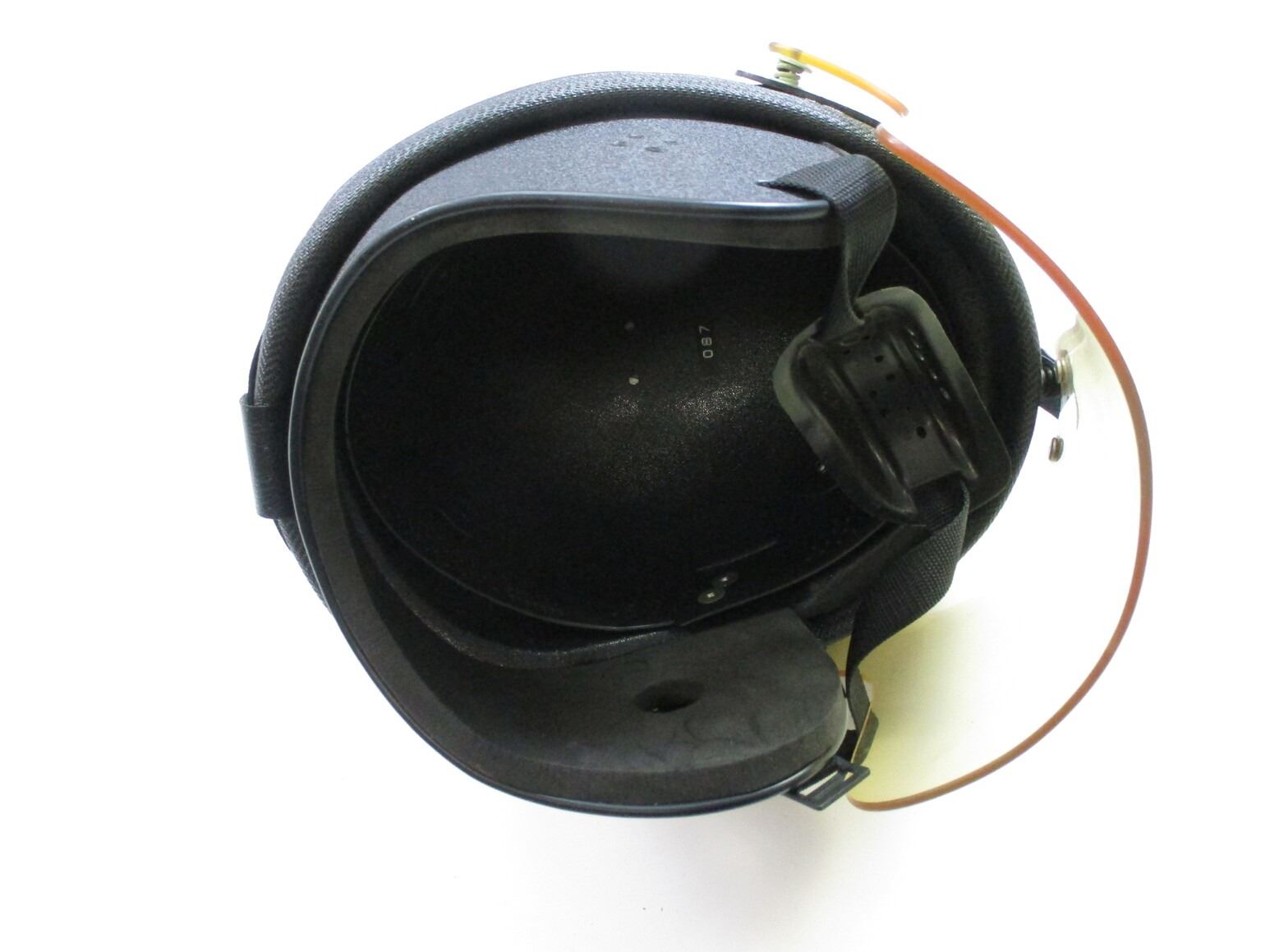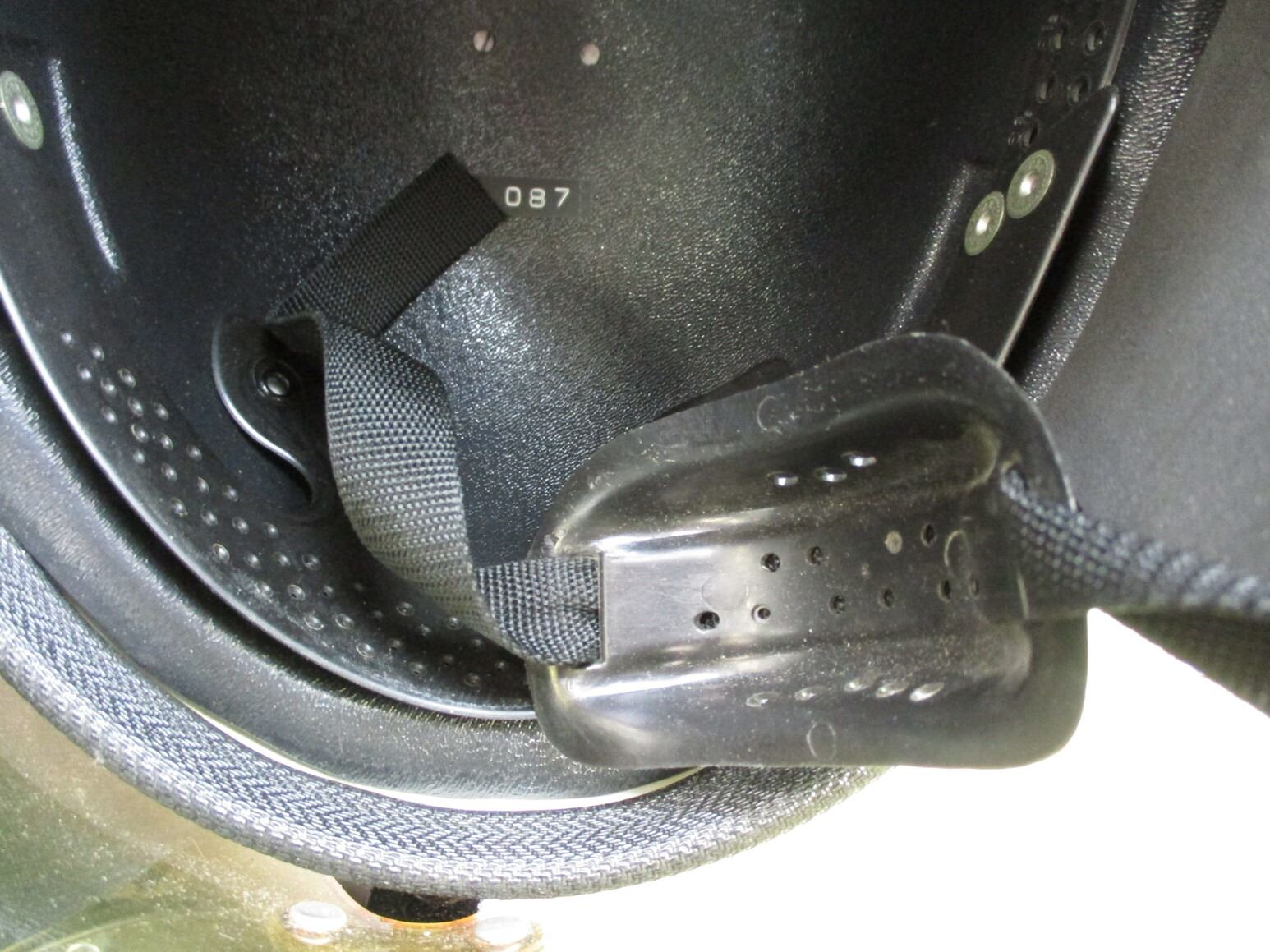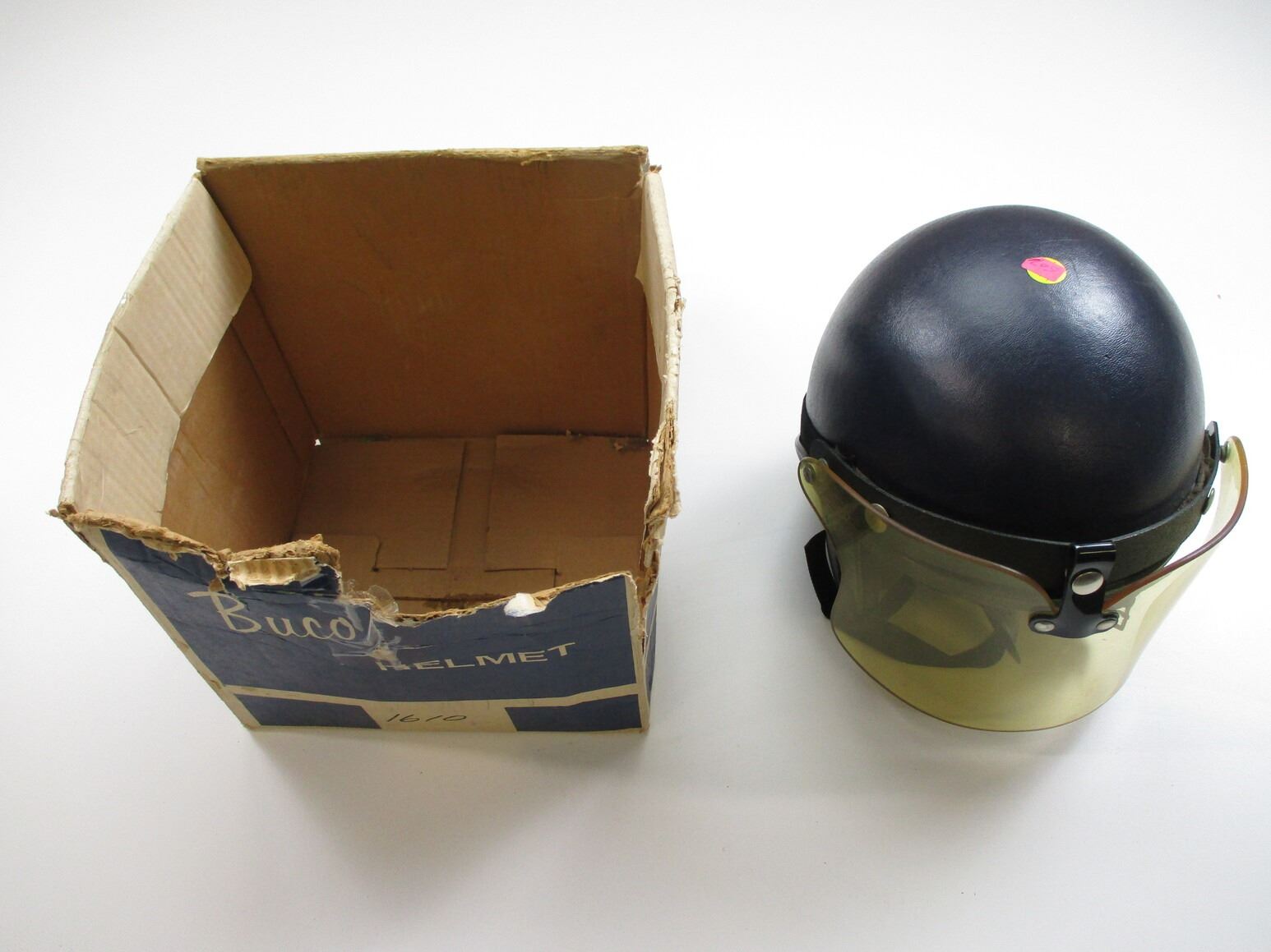 VINTAGE STYLE BUCO HELMET , APPEARS NOS, OR SLIGHTLY USED, COMES IN ORIGINAL PACKAGE, FITS USE MOTOR SPORTS, SKIING, ETC, WITH FACE SHIELD & CHIN STRAP. 087 MARKED INSIDE HELMET, UNSURE OF SIZE.