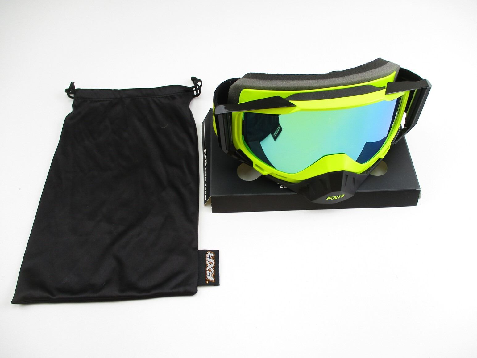 FXR CORE OPTICS GOGGLES , HI-VIS, LIME GREEN & BLACK, COLOUR, POSSIBLY FITS XL FXR HELMETS, COMES WITH CARRY BAG, APPEARS SLIGHTLY USED, IN ORIGINAL PACKAGE.