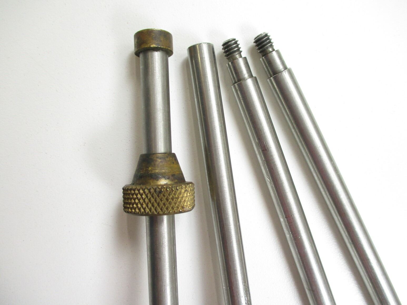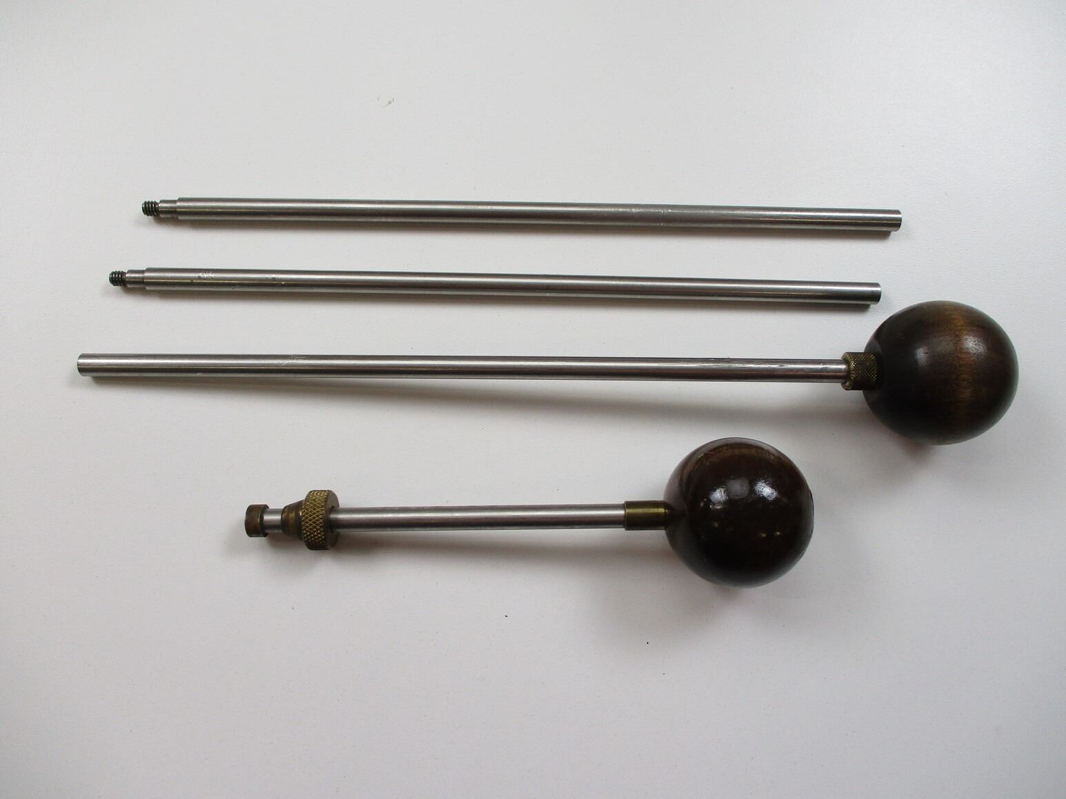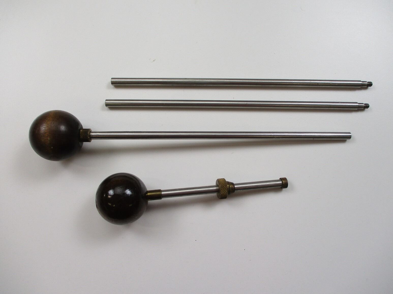 MUZZLE LOADER CLEANING ROD & BALL STARTER , (1) BALL STARTER WITH BRASS, ALUMINUM & WOOD CONSTRUCTION, (1) 3 PIECE ALUMINUM CLEANING ROD, WITH WOODEN BALL HANDLE. APPROX. 30.5" IN LENGTH. APPROX. 0.31" DIAMETER.