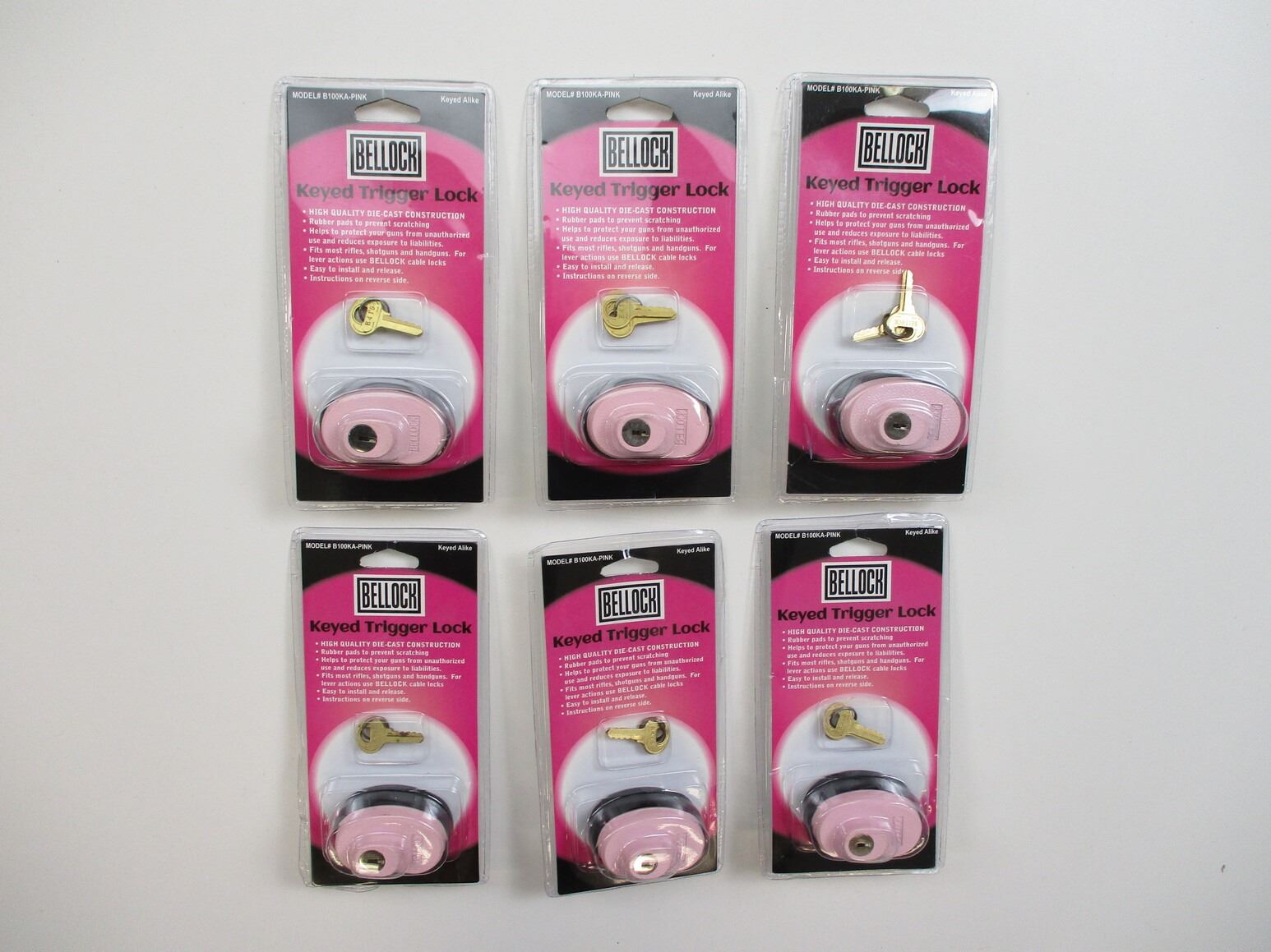 PINK TRIGGER LOCKS , LOT OF 6. NOS. KEYED ALIKE TRIGGER LOCKS. IN ORIGINAL PACKAGE.