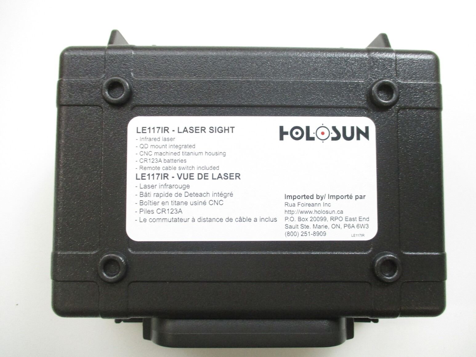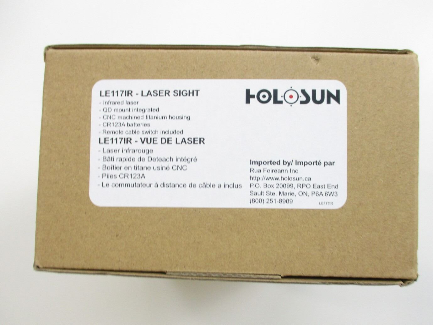 HOLSUN LE117IR INFRARED LASER KIT , FITS TO PICATINNY STYLE RAILS, INCLUDES REMOTE CABLE SWITCH, BATTERIES, COMES IN PADDED CARRY CASE. IN ORIGINAL PACKAGE.