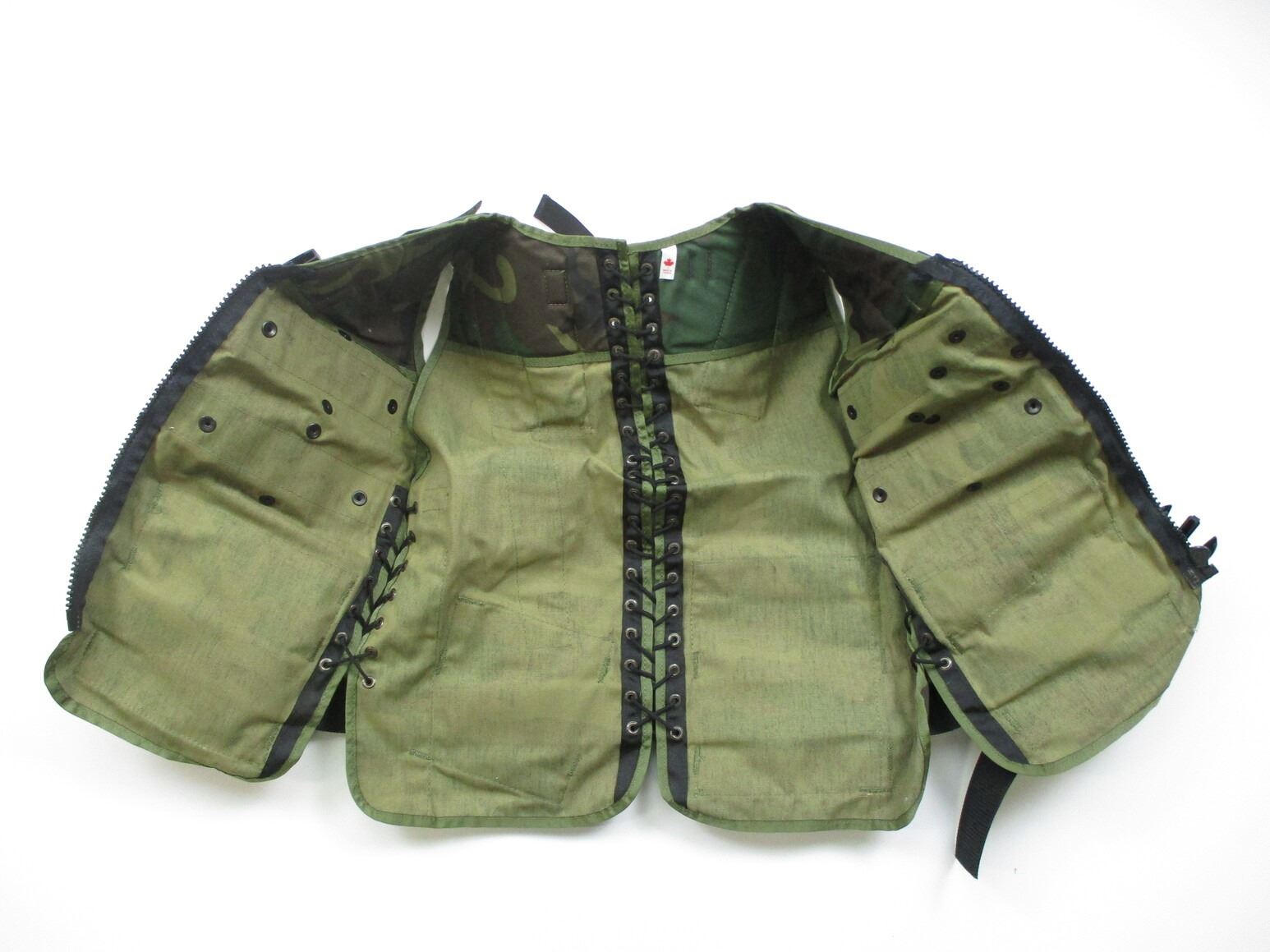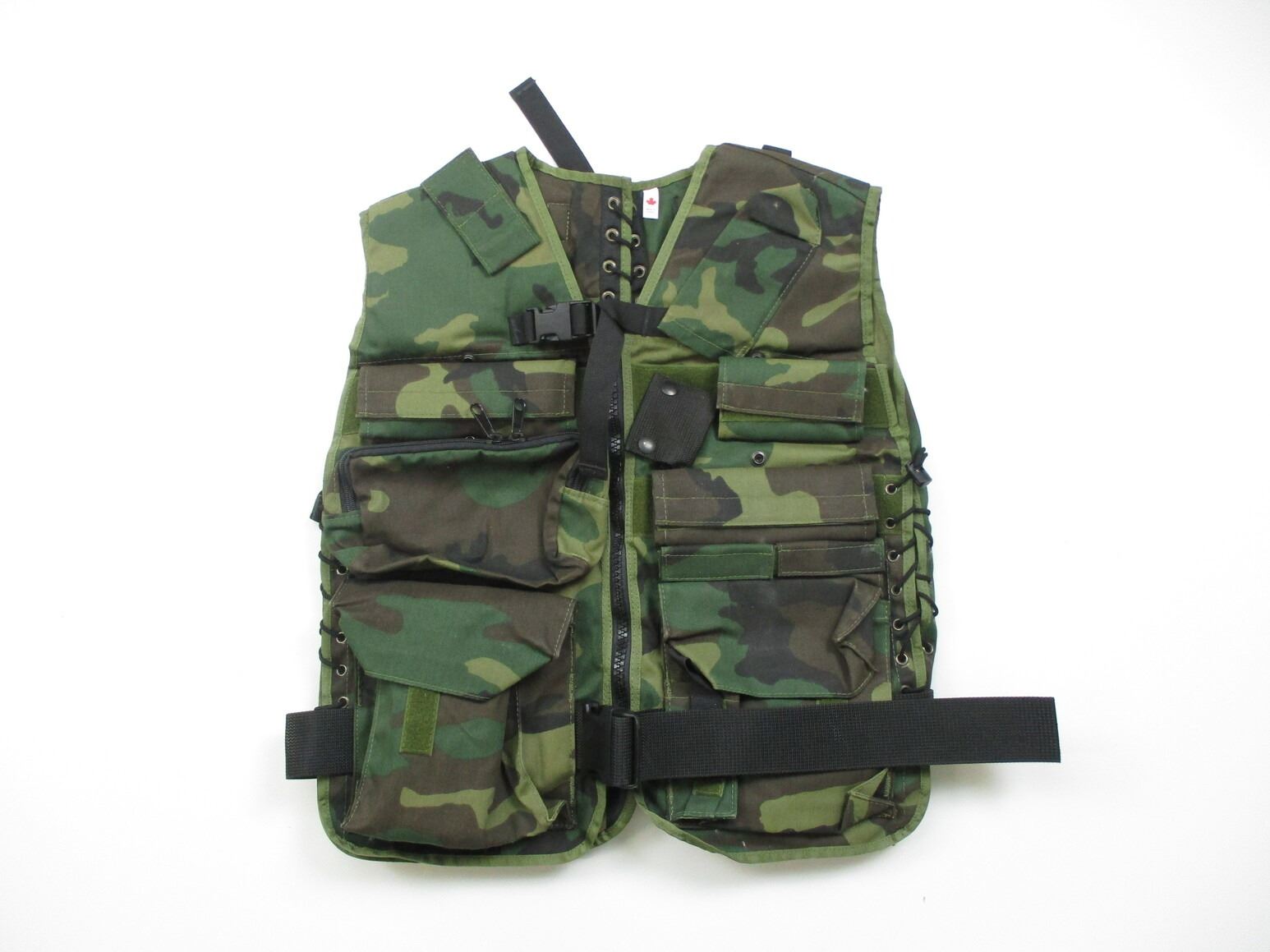 COMMERCIAL TACTICAL VEST , INCLUDES ZIPPER POCKETS & POUCHES, WITH VARIOUS DETACHABLE POCKETS, FRONT ZIPPER & PLASTIC BELT CLIPS, MADE IN CANADA, APPROX. 18" SHOULDER TO SHOULDER, APPROX. 21" TORSO.
