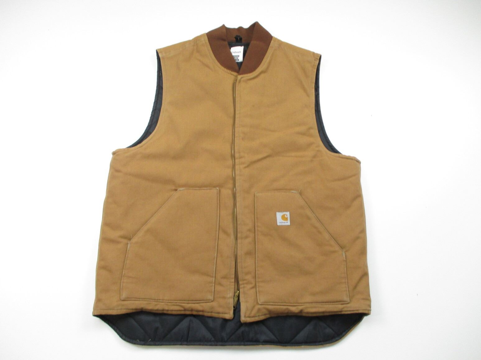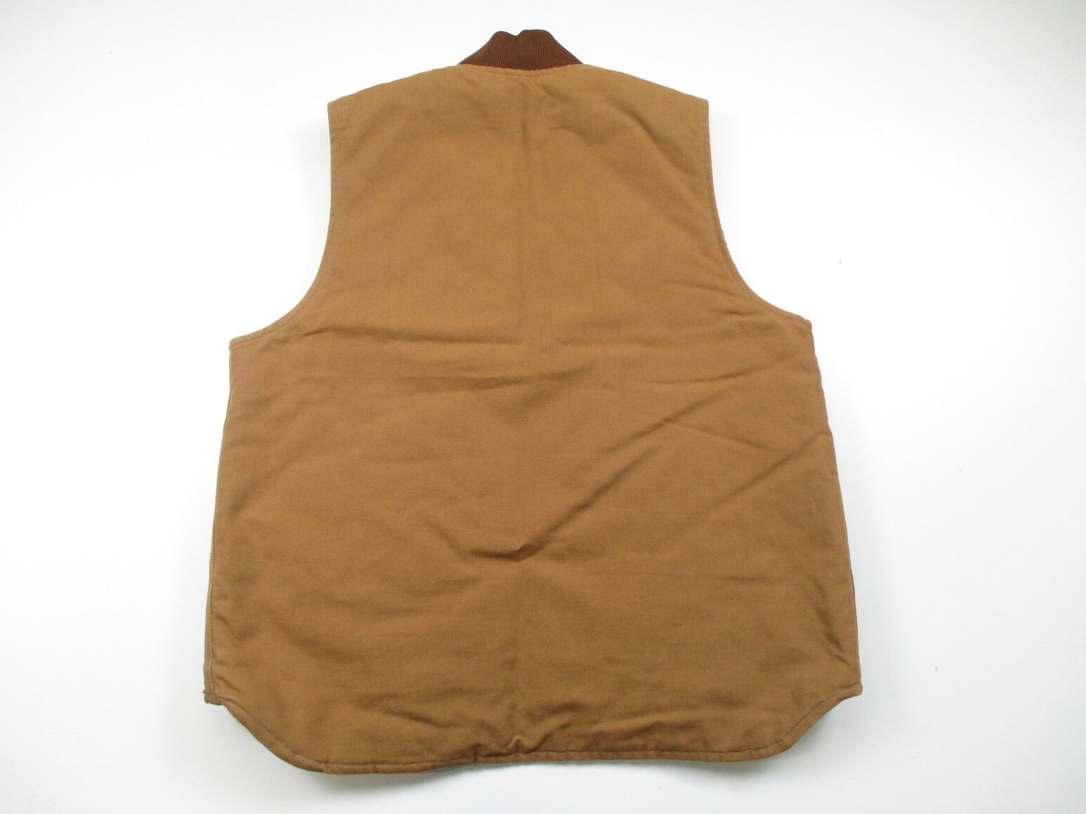 CARHARTT WORKERS VEST , BROWN CANVAS TYPE MATERIAL, WITH NYLON PADDING, X-LARGE TALL SIZE. APPEARS NOS OR SLIGHTLY USED.