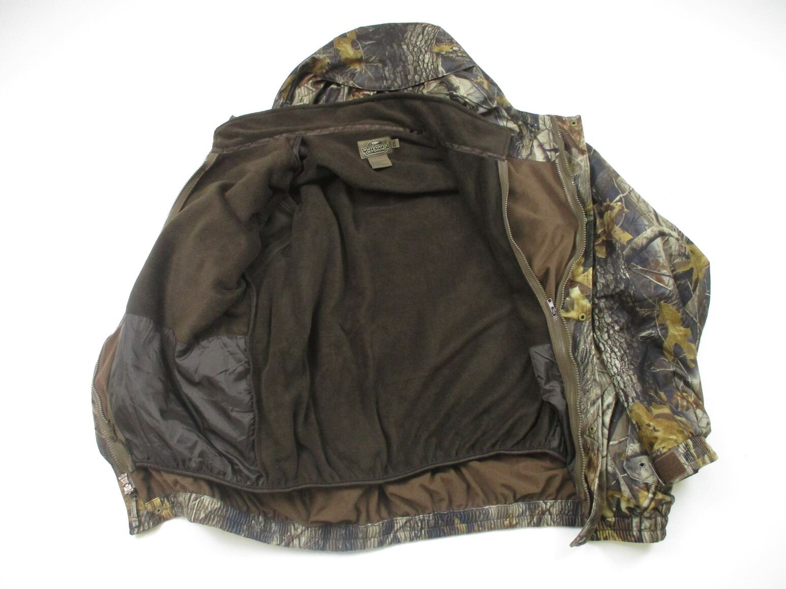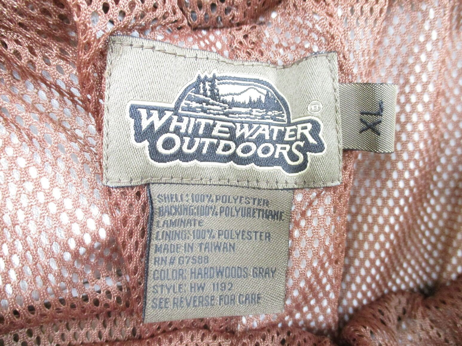 WHITE WATER OUTDOORS HUNTING COAT & PANTS , COAT SIZE: 2XL, INCLUDES INNER DETACHABLE COAT OF THE SAME SIZE, WITH FRONT BOTTOM UP POCKETS, APPEARS NOS OR SLIGHTLY USED, (1) PAIR OF XL HUNTING PANTS, WITH ZIP UP POCKETS, APPEARS NOS OR SLIGHTLY USED.