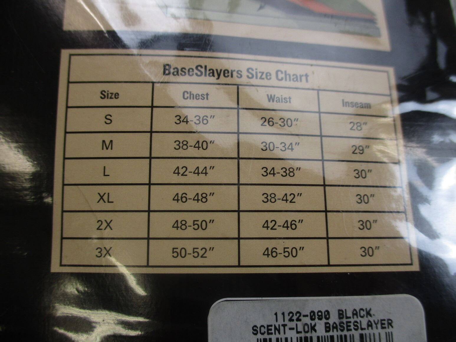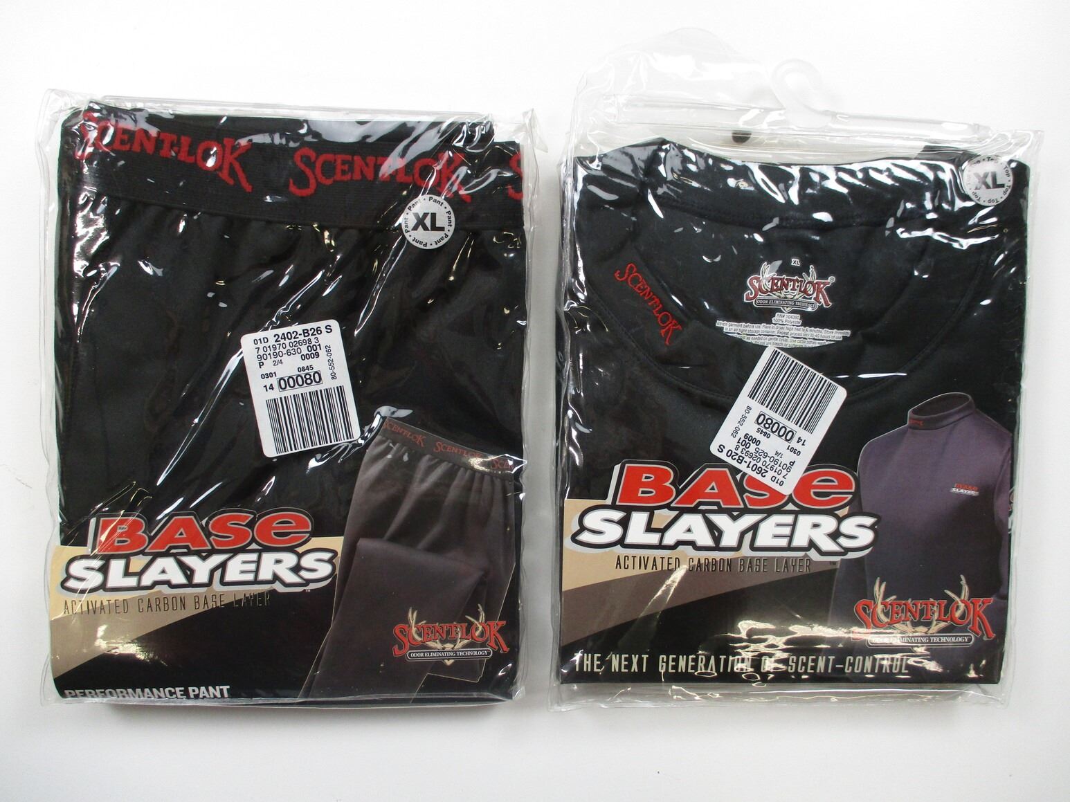 SCENT-LOK PANTS & LONG SLEEVE SHIRT , (1) PAIR OF PERFORMANCE PANTS, SIZE: XL, APPEARS NOS, IN ORIGINAL PACKAGES, (1) BASE SLAYERS UNDER SHIRT, LONG SLEEVE, SIZE: XL, APPEARS NOS, IN ORIGINAL PACKAGE. SEE PHOTO.