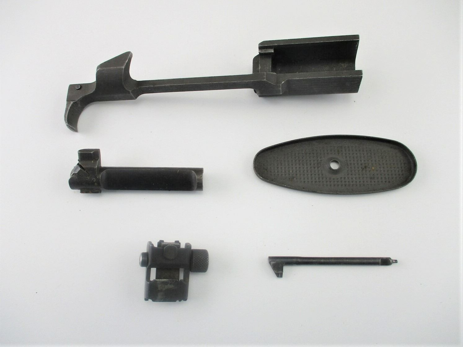 M-1 CARBINE PARTS , INCLUDES: SLIDE, MARKED WITH "L" & # 160091, COMPLETE BOLT, FLAT TOP, BUTT PLATE, FIRING PIN, & REAR SIGHT WITH ELEVATION & WINDAGE ADJUSTMENT.