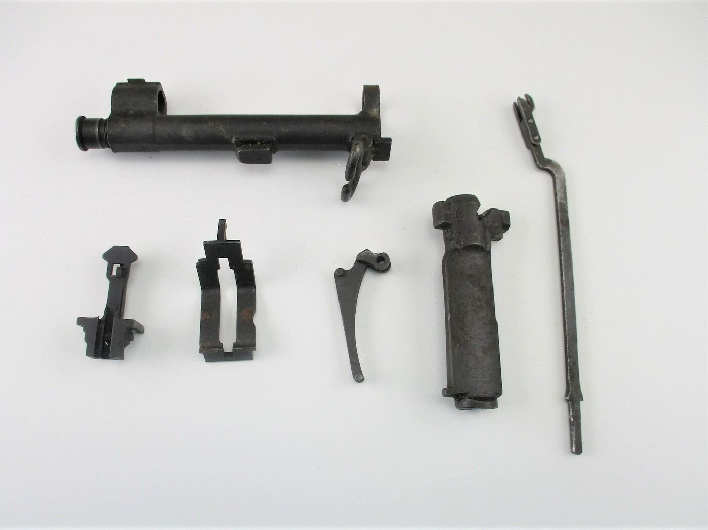 M-1 GARAND RIFLE PARTS , INCLUDES: STRIPPED BOLT, # 6528287-SA 7-3-A ON BOLT, MFG'D BY SPRINGFIELD, GAS CYLINDER, FOLLOWER ROD, BULLET GUIDE, FOLLOWER & SLIDE ASSEMBLY, FOLLOWER ARM,
