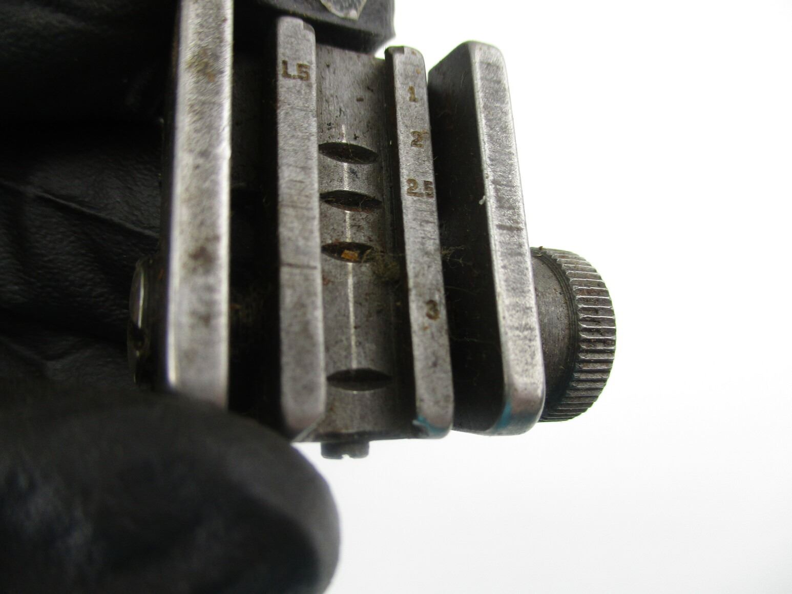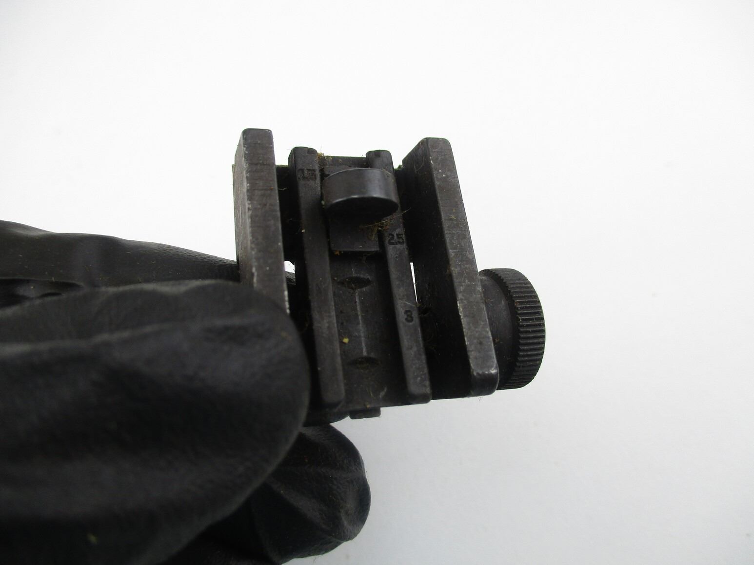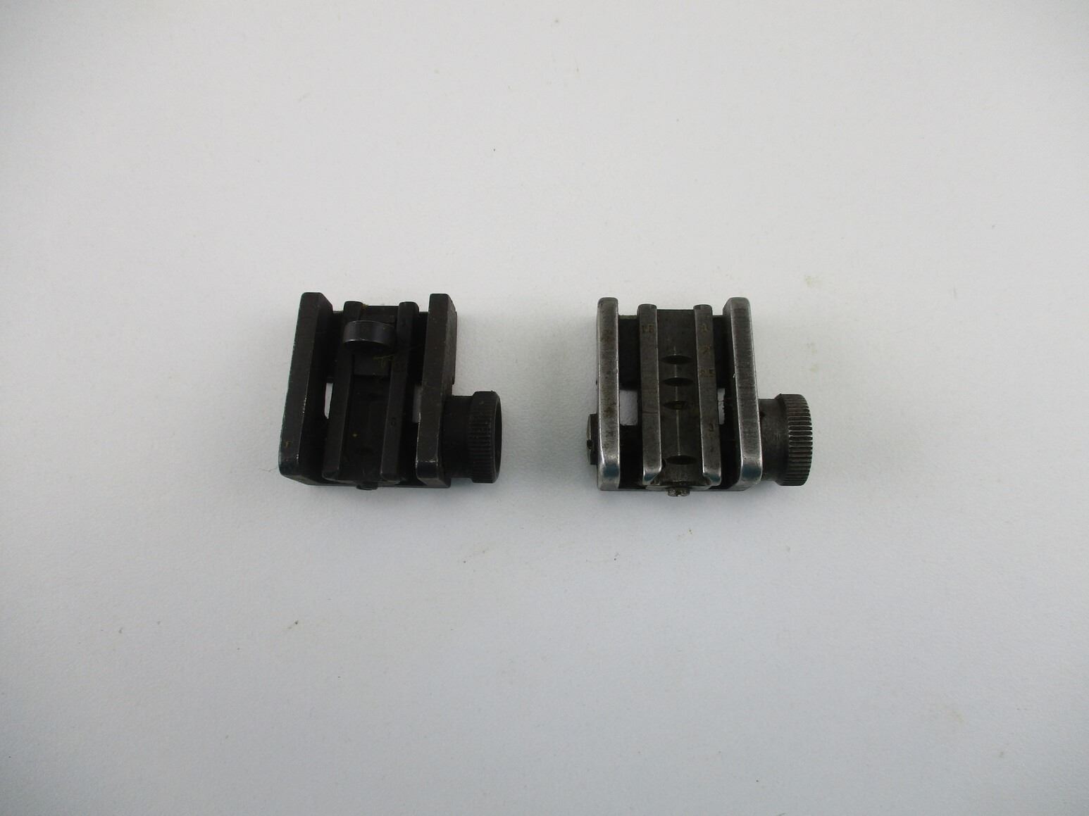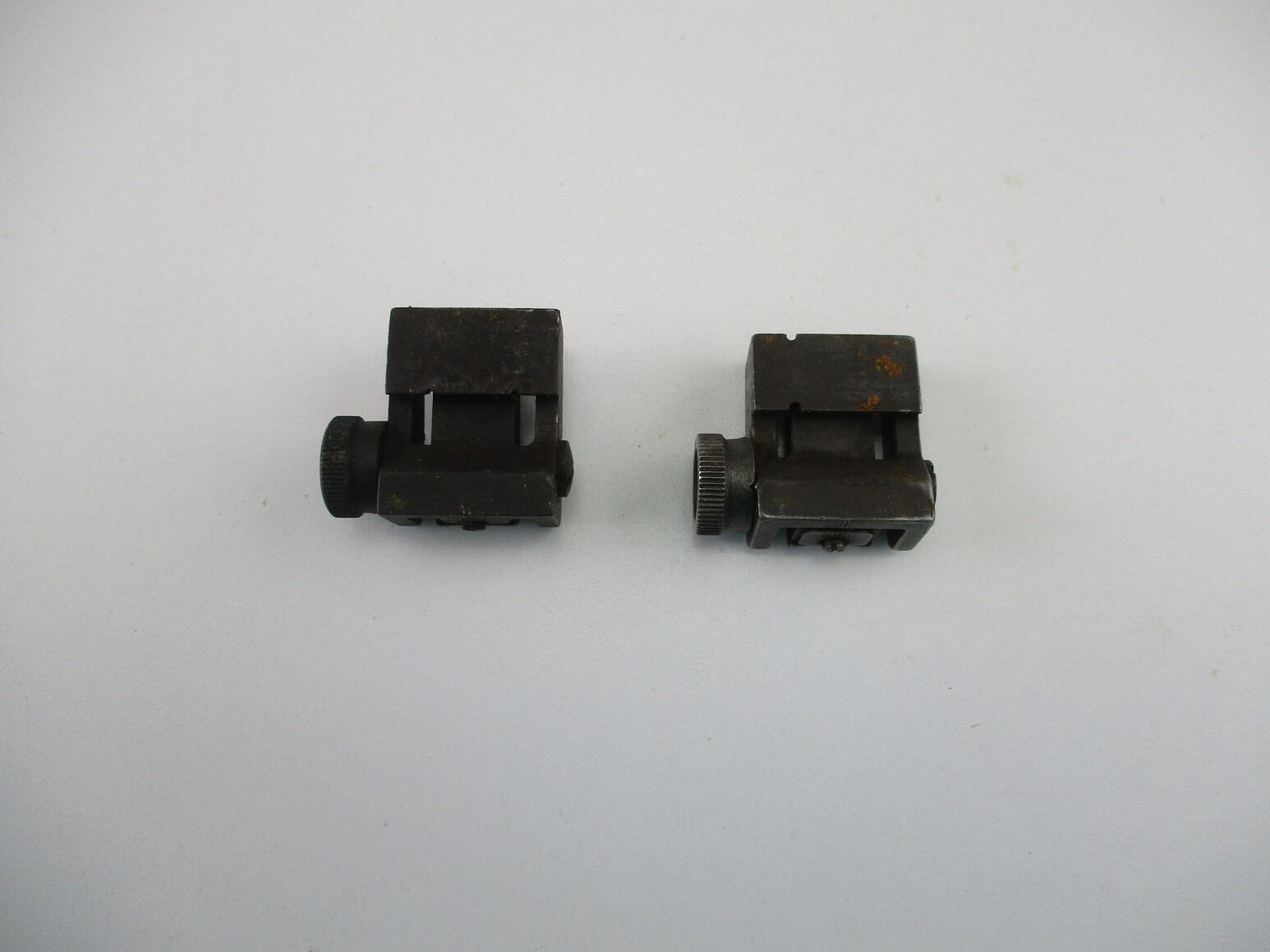 M-1 CARBINE PARTS , LOT OF 2. REAR SIGHTS WITH ELEVATION & WINDAGE ADJUSTMENTS, NOTE: 1 SIGHT APPEARS COMPLETE, 1 SIGHT MISSING PEEP SIGHT PART.