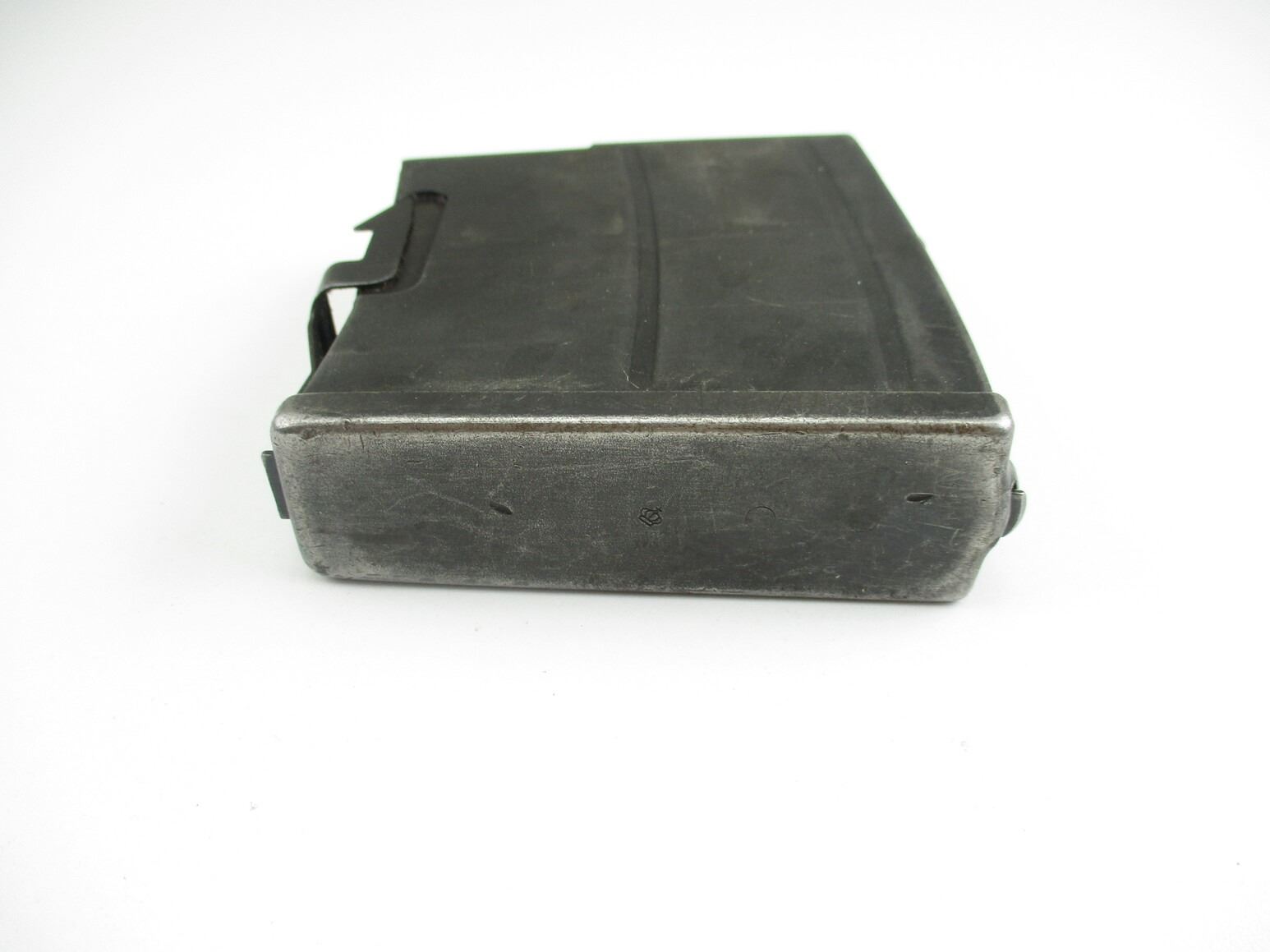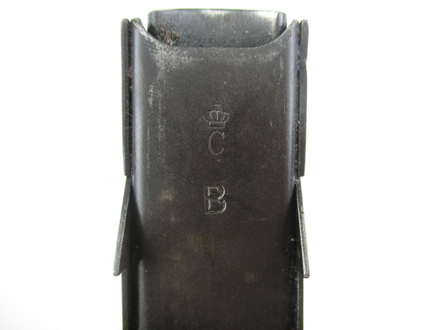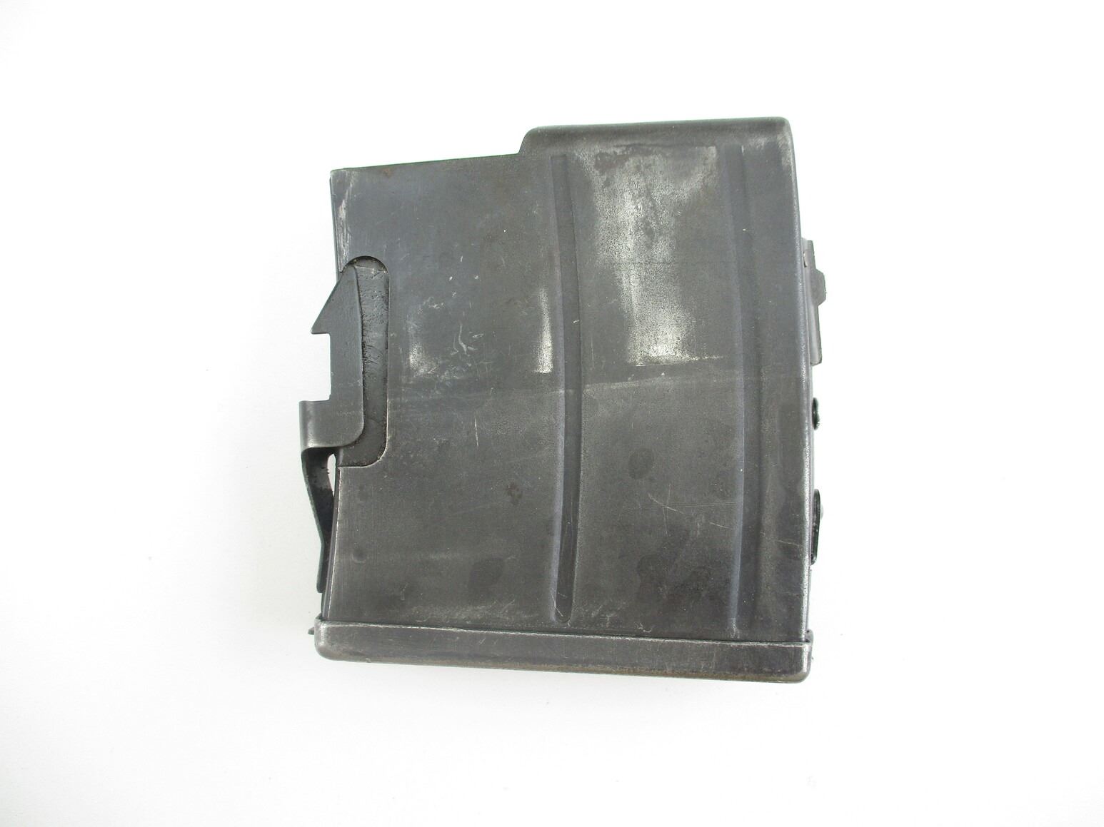 SWEDISH M42B RIFLE MAGAZINE , 6.5X 55, 5/10 ROUND PINNED MAG, BLUED STEEL, MARKED WITH CROWN "C" & "B" ON FRONT OF MAG.