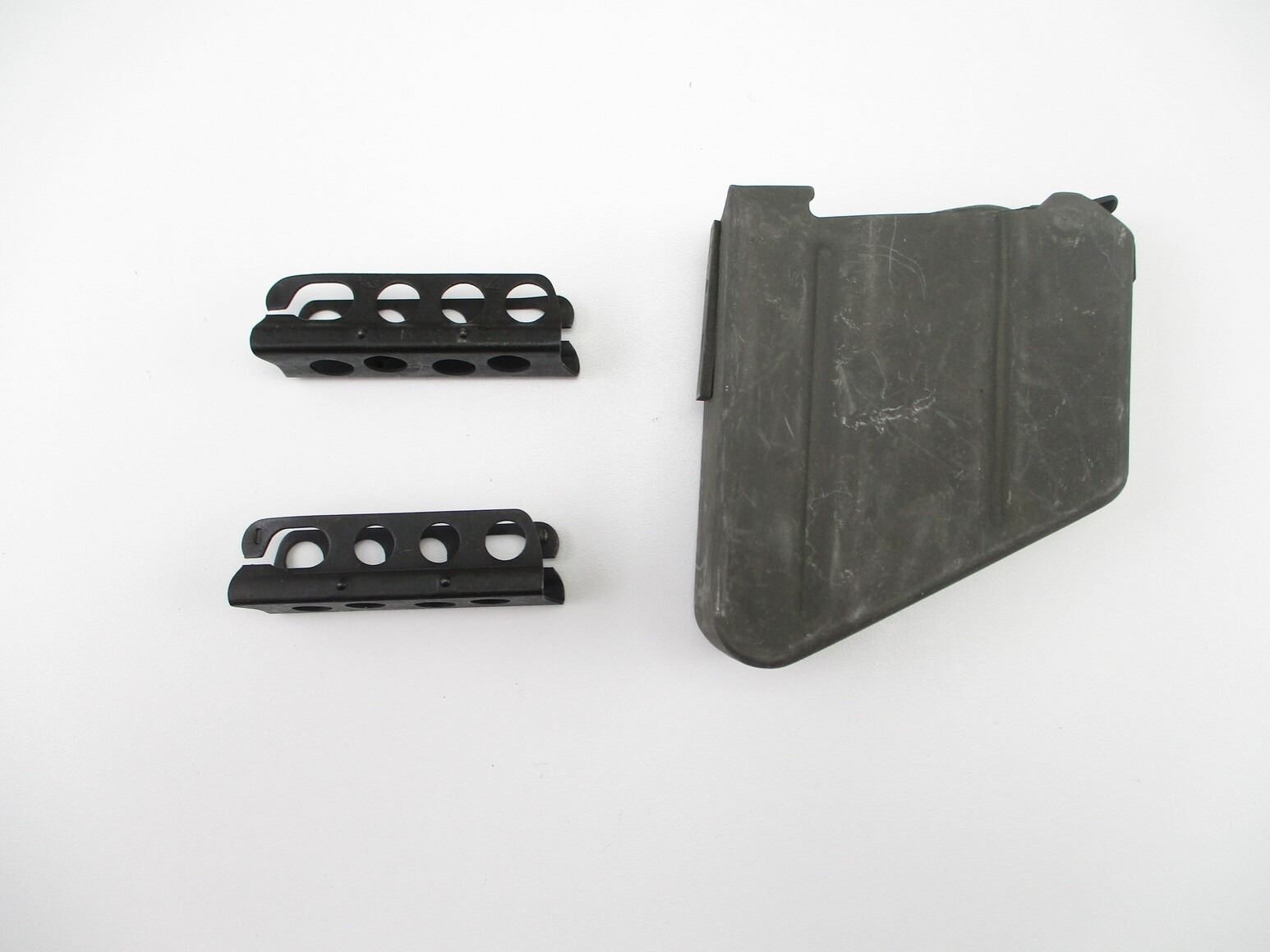 LEE ENFIELD NO.4 MK.1 RIFLE MAGAZINE WITH STRIPPER CLIPS , (1) .303BR, 10 ROUND MAG, PARKERIZED TYPE STEEL, BROAD ARROW & "F" MARKED ON BACK OF MAG, INCLUDES (2) 5 ROUND .303 BR STRIPPER CLIPS.