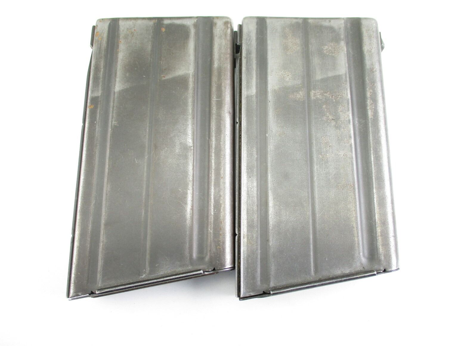 FN FAL INCH PATTERN RIFLE MAGAZINES , LOT OF 2. 7.62N, 5/20 ROUND PINNED MAGS, STEEL, NO VISIBLE MARKINGS ON MAGS.