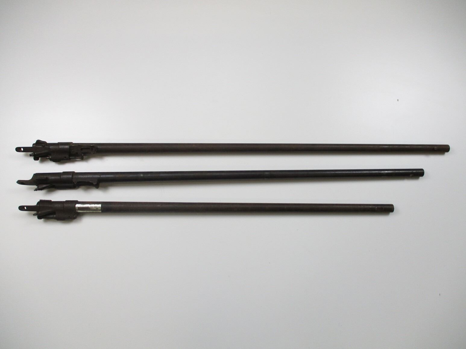 SNIDER ENFIELD BARRELS & ACTIONS , LOT OF 3. LOT IS ANTIQUE. DOES NOT REQUIRE A PAL. APPROX. 36.25", 33.25", 29.9" BARRELS, POOR BORES, IN .577 SNIDER, ACTIONS (SHOES) INCLUDES BOLT ASSEMBLY, UNSURE IF COMPLETE, ACTIONS WITH VARIOUS MARKINGS. (1) INCLUDES REAR SIGHT. MAY REQUIRE FITTING.
