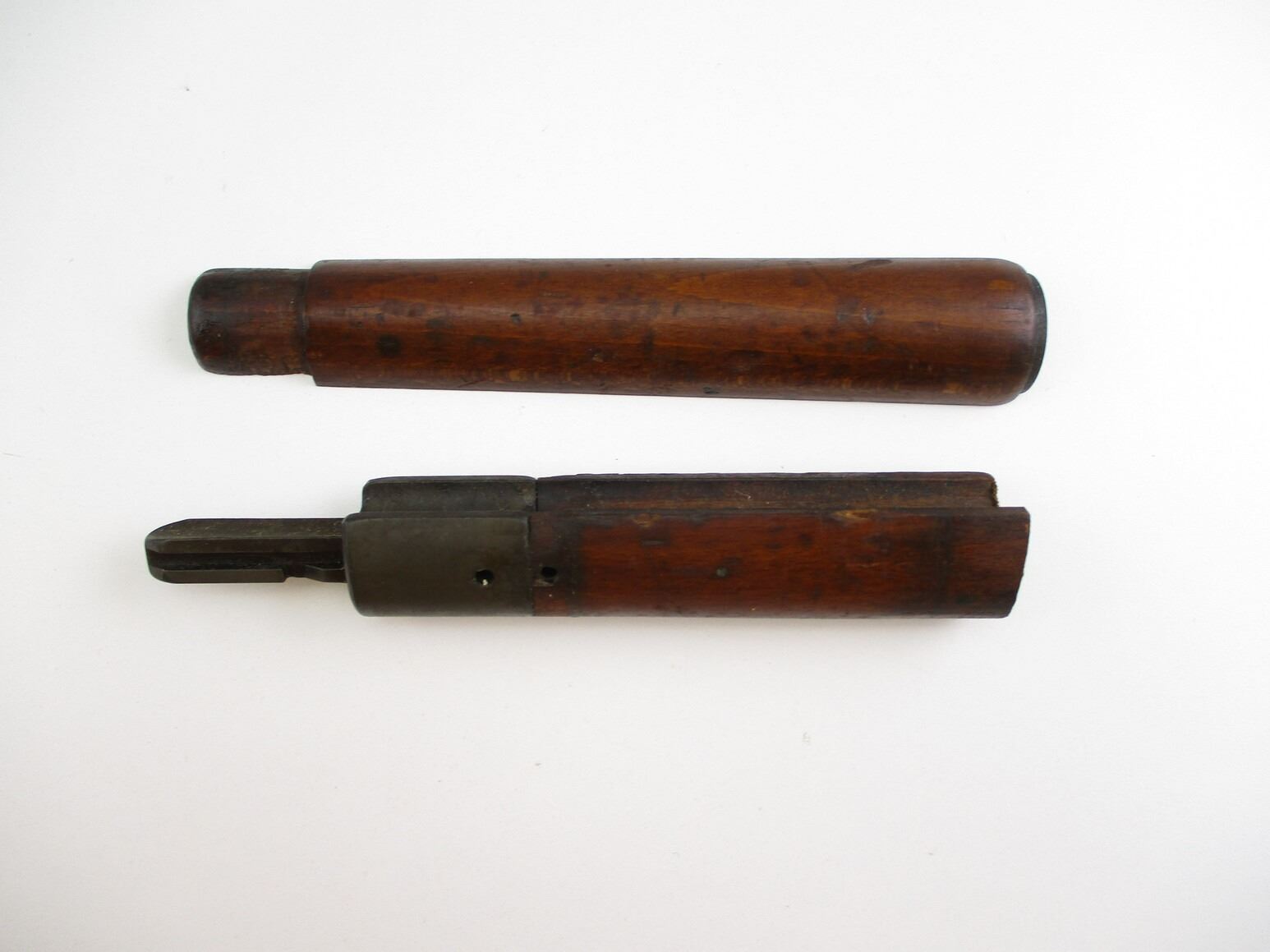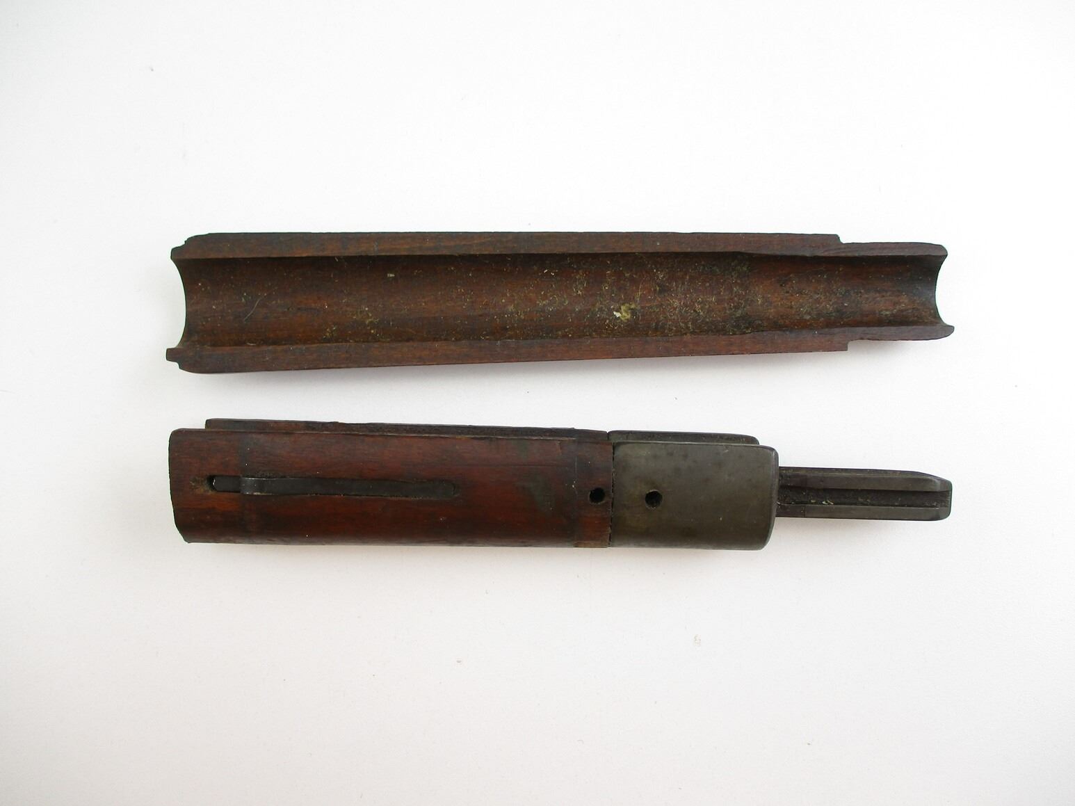MILITARY STYLE HANDGUARDS , (1) K98 MAUSER HANDGUARD, APPROX. 7.5" OAL, MAY REQUIRE FITTING, (1) CUT OFF FOREND WITH BAYONET LUG, & BARREL BAND SPRING, POSSIBLY MAUSER.