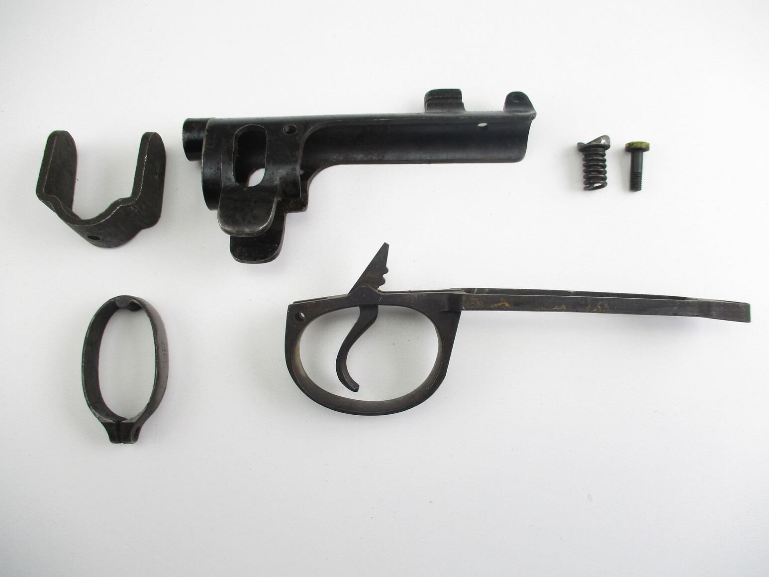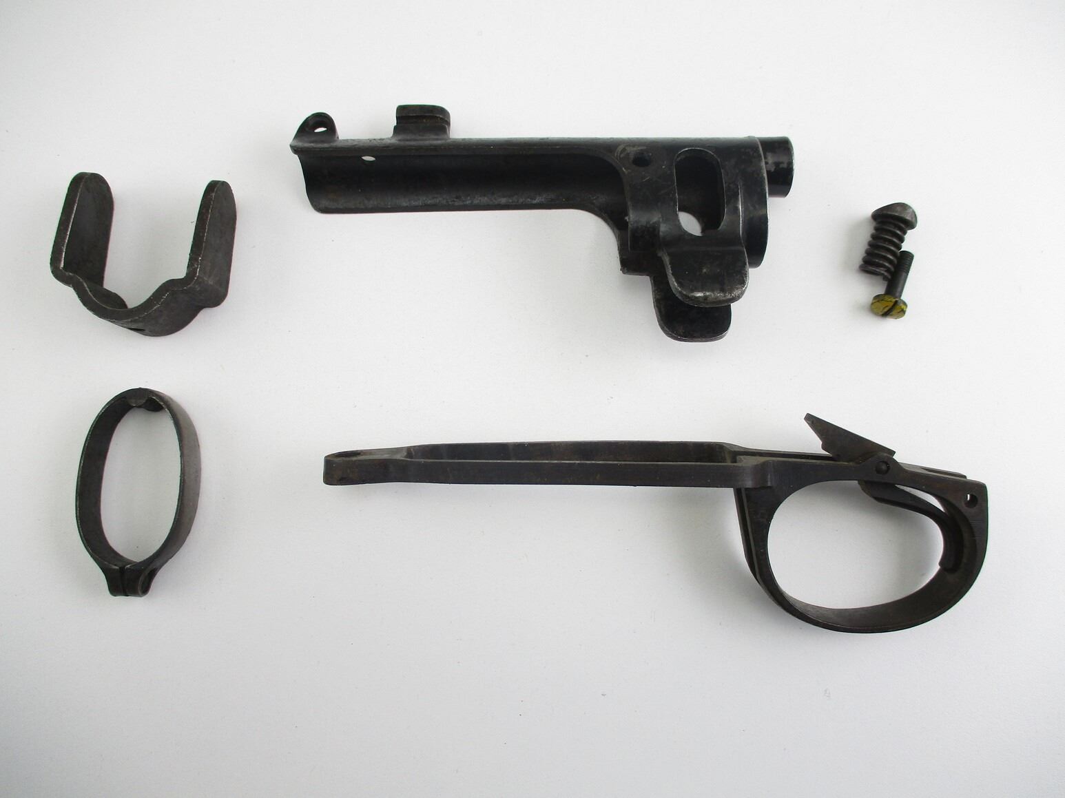 ASSORTED LEE ENFIELD NO.1 MK.3 PARTS , INCLUDES: FRONT NOS CAP, WITH FRONT SIGHT EARS & BAYONET LUG, REAR SIGHT EARS, TRIGGER GUARD & TRIGGER, BARREL BAND, ETC. MOST PARTS MARKED WITH "DP", TRIGGER GUARD MARKED WITH "A" IN STAR, PARTS WITH VARIOUS OTHER MARKINGS. MAY REQUIRE FITTING.