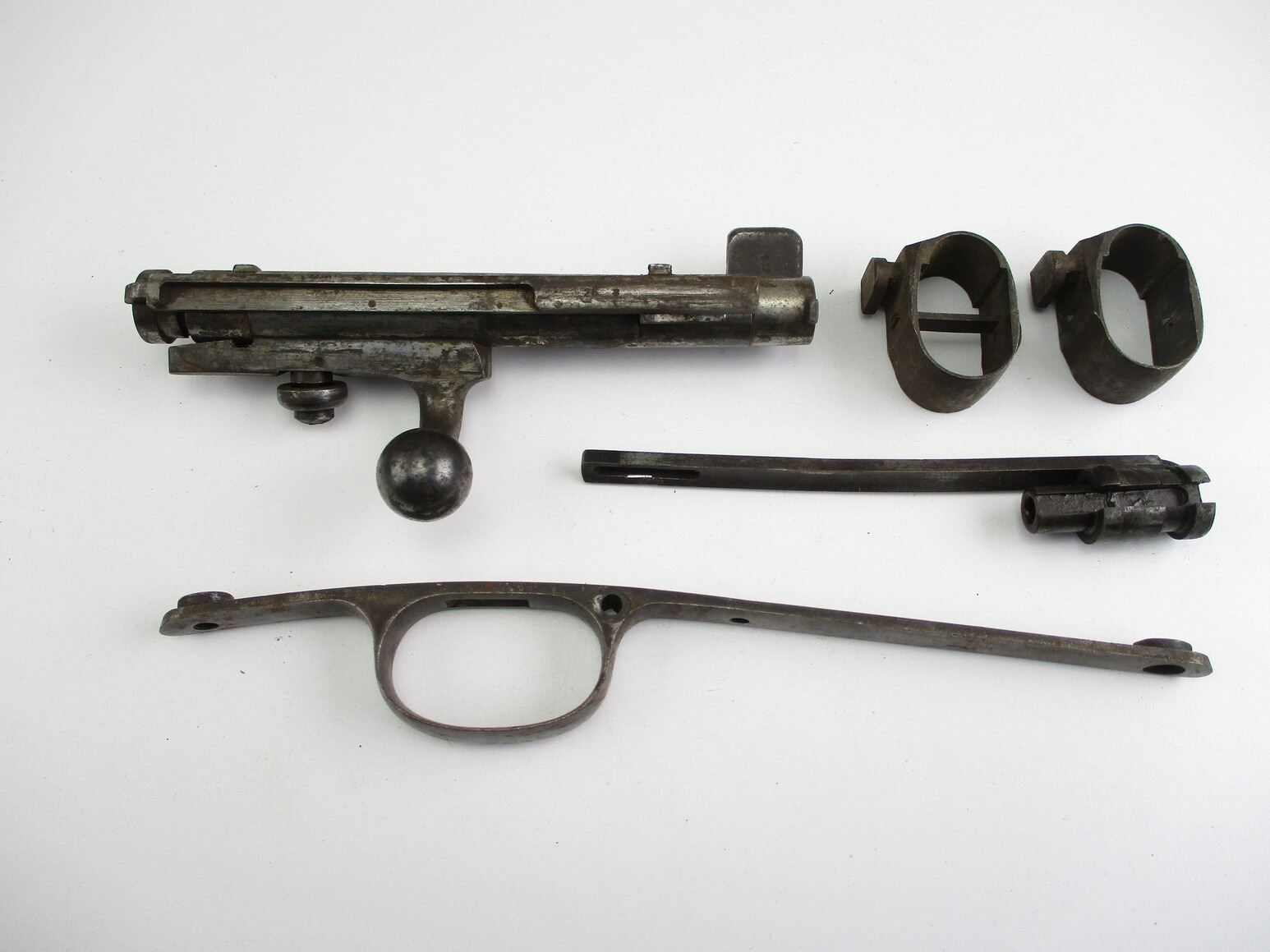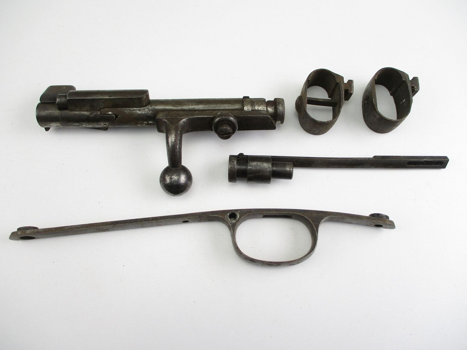 GERMAN 71, 7/84 RIFLE PARTS, FITS .43 MAUSER, INCLUDES: TRIGGER GUARD, BARREL BANDS, BOLT (MISSING EXTRACTOR), SPARE BOLT HEAD, ETC.