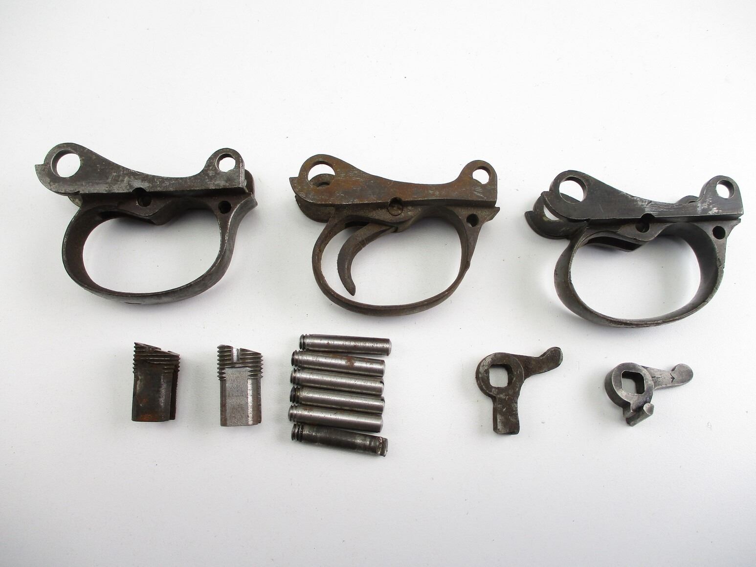 ASSORTED MARTINI HENNERY PARTS , INCLUDES: TRIGGER GUARDS, TIGGER, WITH VARIOUS PINS & OTHER PARTS. LOT MAY CONTAIN DIFFERENT MODELS. MAY REQUIRE FITTING.