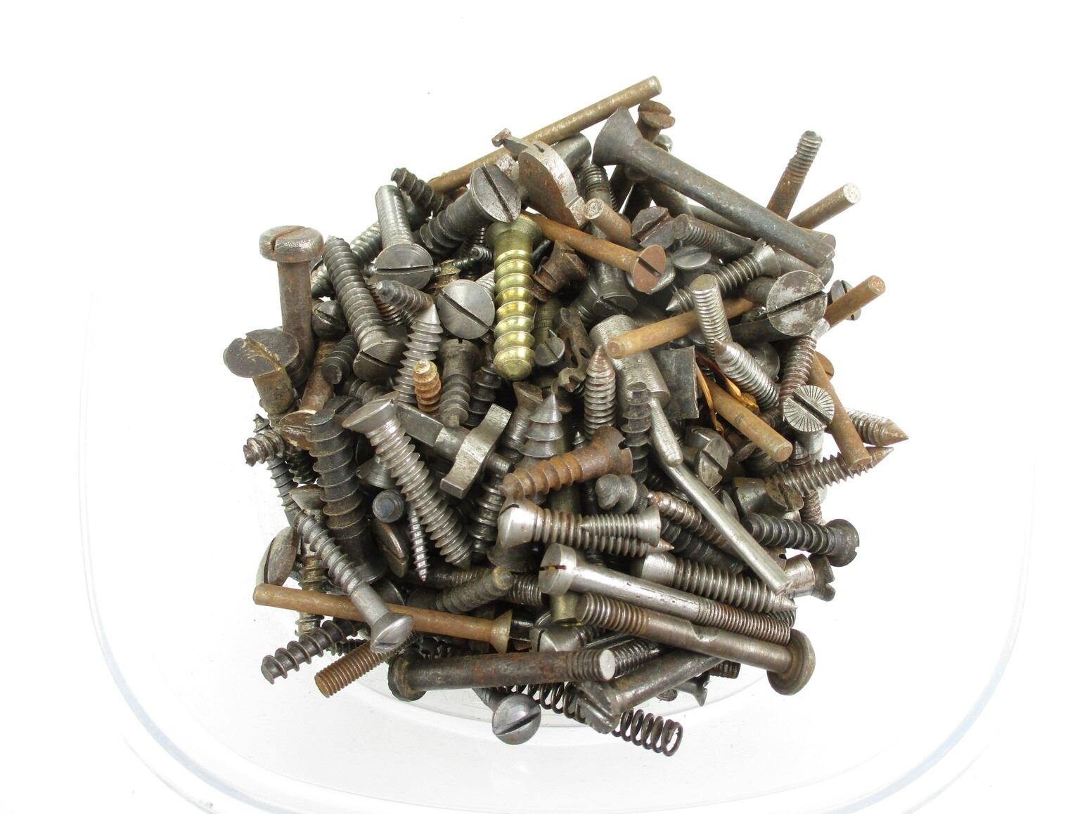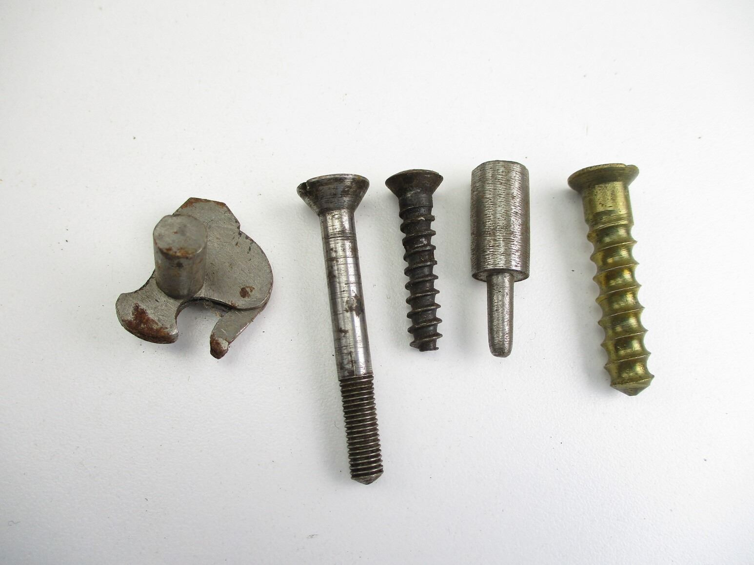 ASSORTED SCREW & PINS ETC, POSSIBLY FOR MILITARY ANTIQUES, MAY CONTAIN, RECEIVER PINS, STOCK SCREWS, ETC. PINS & SCREWS, COMES IN VARIOUS SHAPES & SIZES.