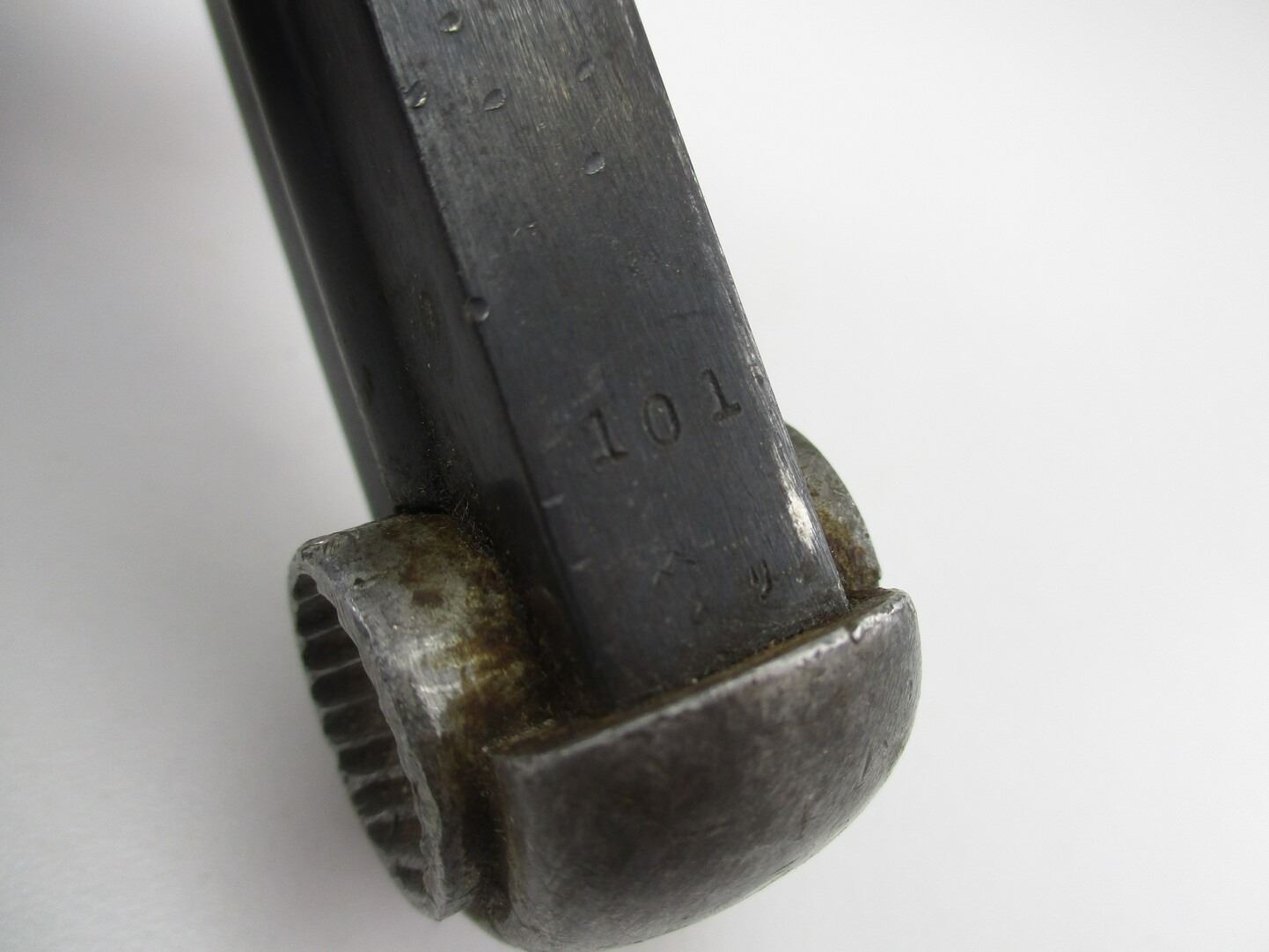 JAPANESE NAMBU TYPE 14 PISTOL MAGAZINE , 8MM NAMBU, 8 ROUND MAG, BLUED STEEL, WITH ALLOY TYPE BASE, # 101 ON BOTTOM PART OF MAG.