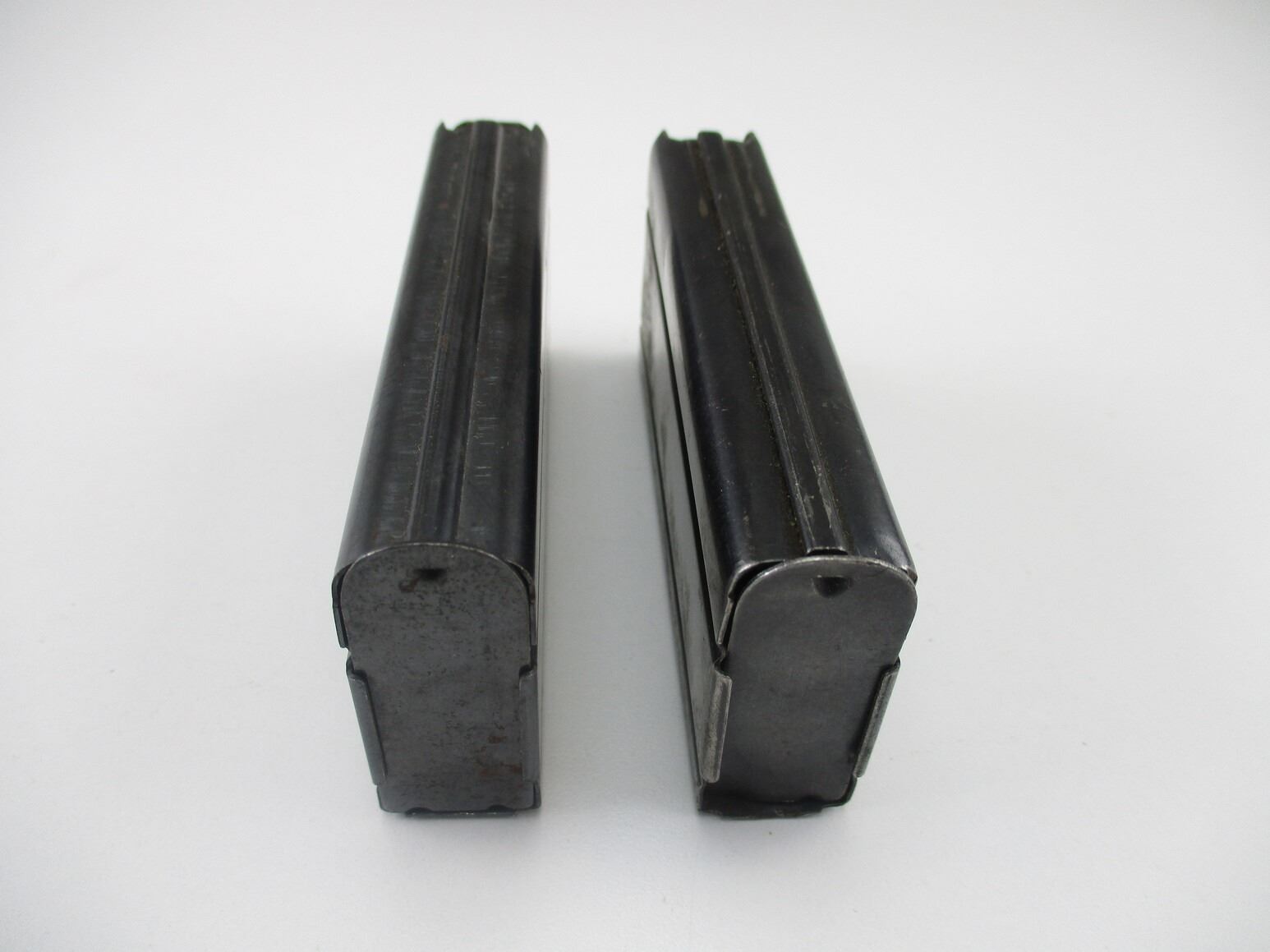 M-1 CARBINE MAGAZINES , LOT OF 2. M-1 .30 CAL, 5/15 ROUND PINNED MAGS, BLUED STEEL, MARKED "IS" & " R-C"