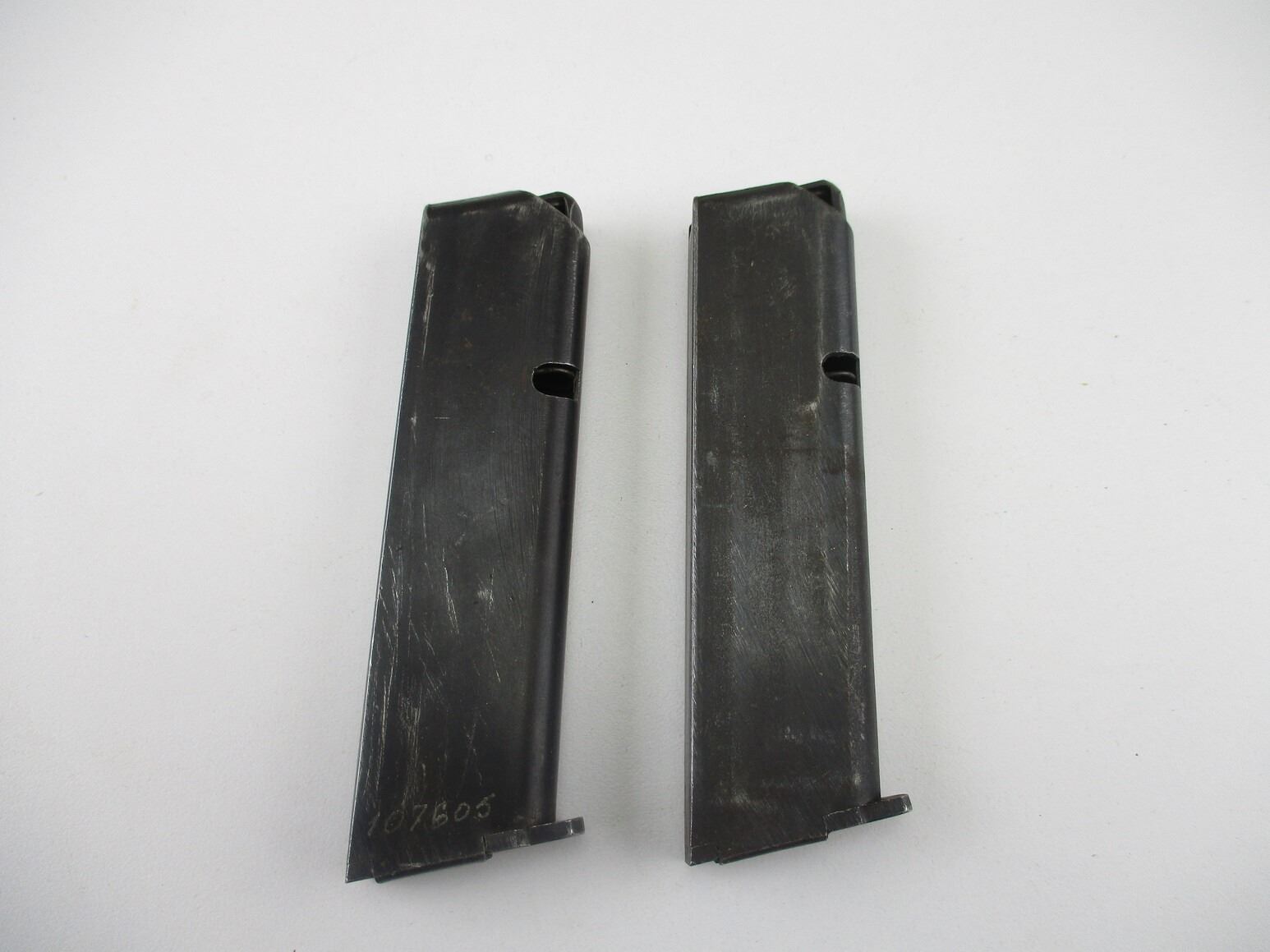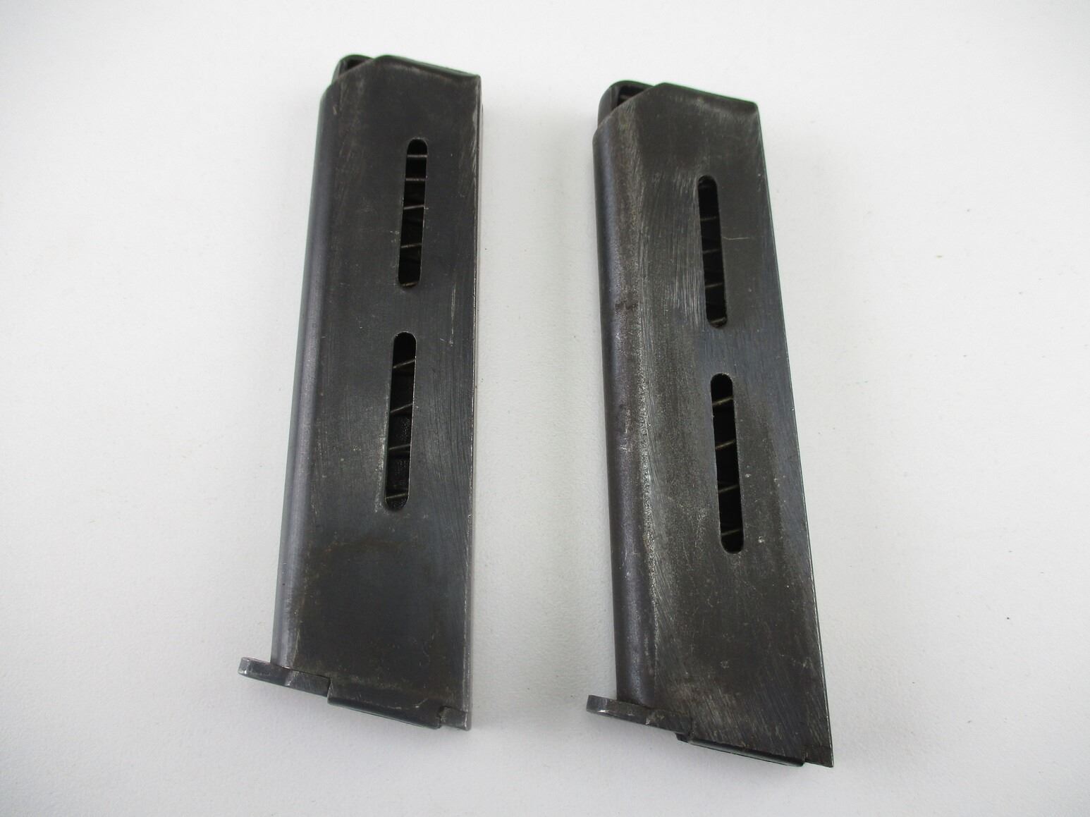 FRENCH MAB MODEL D PISTOL MAGAZINES , LOT OF 2. .32 ACP, 8 ROUND MAGS, BLUED STEEL, 1 MAG MARKED 107605