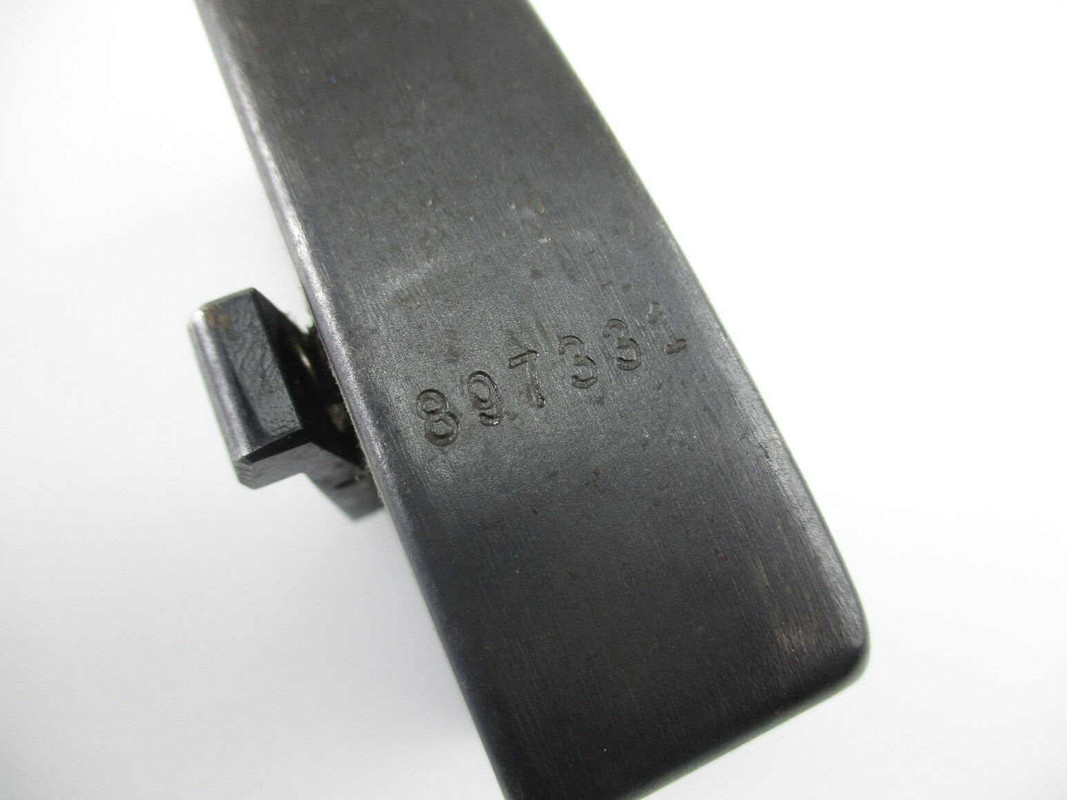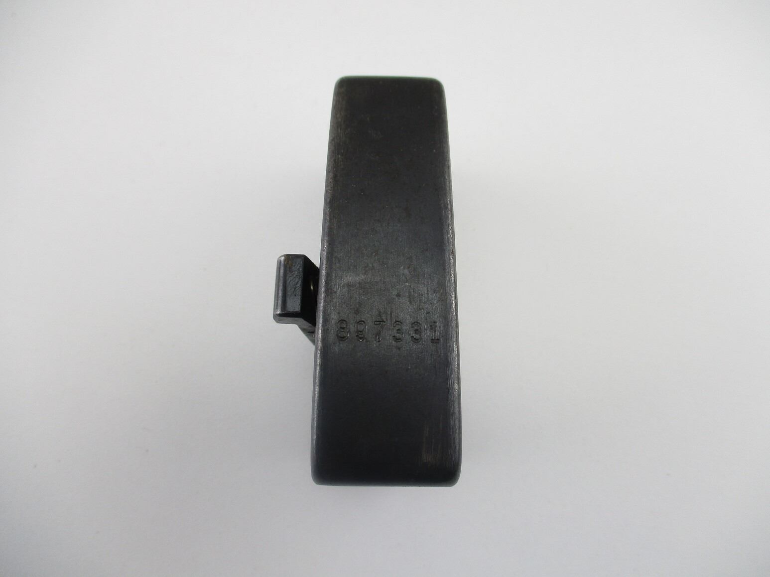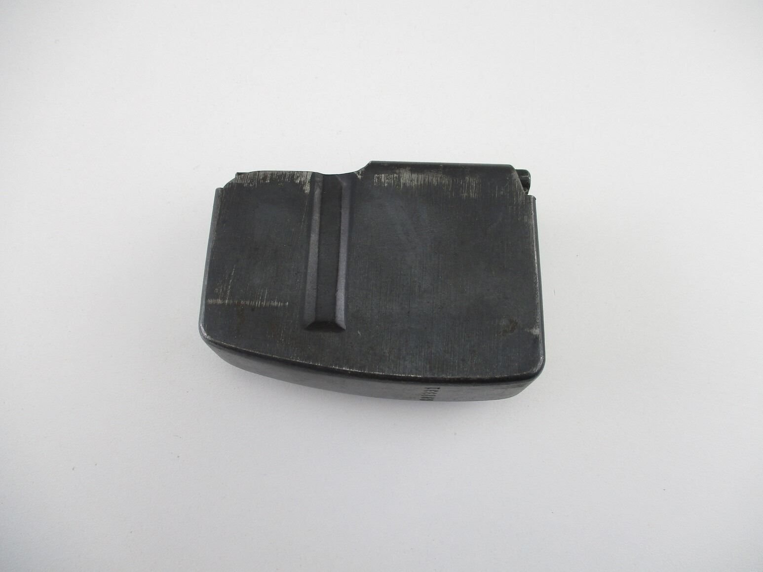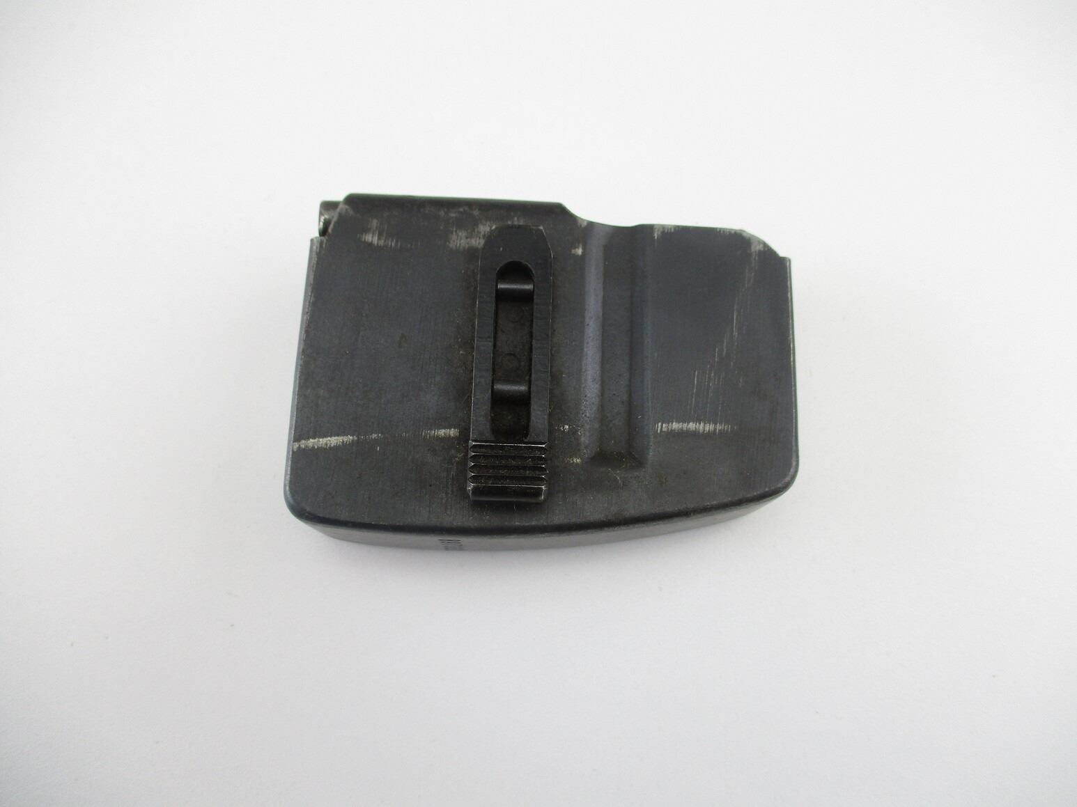 SWISS SCHMIDT RUBIN RIFLE MAGAZINE , FITS K31, 7.5X 55 RIFLES, 5 ROUND MAG, BLUED STEEL, SWISS CROSS MARKED ON BACK, # 897331 ON BOTTOM OF MAG. & OTHER MARKINGS.