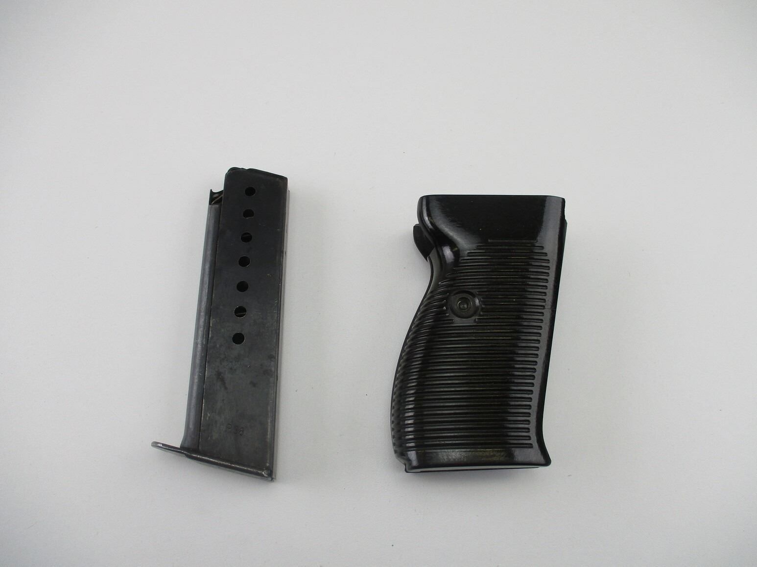 WW.II GERMAN WALTHER P.38 PISTOL MAGAZINES & GRIPS , 9MM, 8 ROUND MAG, BLUED STEEL, WAA 359 MARKED ON BACK OF MAG, # 2415C MARKED ON BOTTOM OF MAG, WITH POLYMER PISTOL GRIPS, WITH MOUNTING SCREW, UNMARKED.