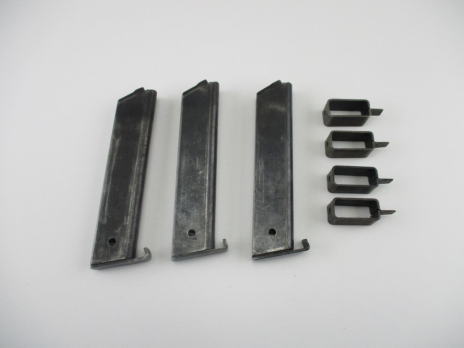 SWEDISH LAHTI MODEL 40 PISTOL MAGAZINES, LOT OF 3. 9MM, 7 ROUND MAGS, BLUED STEEL, UNMARKED, INCLUDES MAG LOADING TOOLS